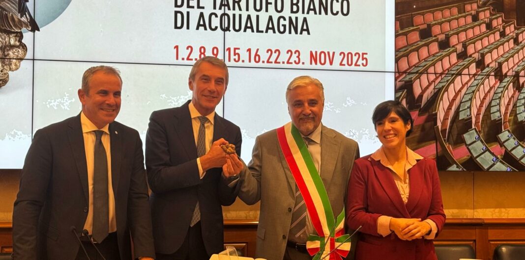ROMA – “Acqualagna è particolarmente orgogliosa di presentare la 60^ Fiera Internazionale del Tartufo Bianco di Acqualagna a Palazzo Madama, sede del Senato della Repubblica, luogo simbolo ed espressione della democrazia italiana. Con la sessantesima edizione celebriamo un traguardo storico risultato di una tradizione secolare e di un patrimonio di ricchezza naturale rappresentato nella nuova immagine dall’aquila reale, che vive e nidifica nella Riserva Naturale della Gola del Furlo, simbolo della salubrità di questo meraviglioso territorio”. Con queste parole il Sindaco di Acqualagna, Pierlugi Grassi, ha aperto la conferenza stampa a Roma, nella prestigiosa Sala ‘Caduti di Nassiriya su iniziativa del Senatore Questore Antonio De Poli “che vorrei ringraziare per la grandissima attenzione che da sempre dimostra per la nostra Fiera” – ha aggiunto il sindaco Grassi.