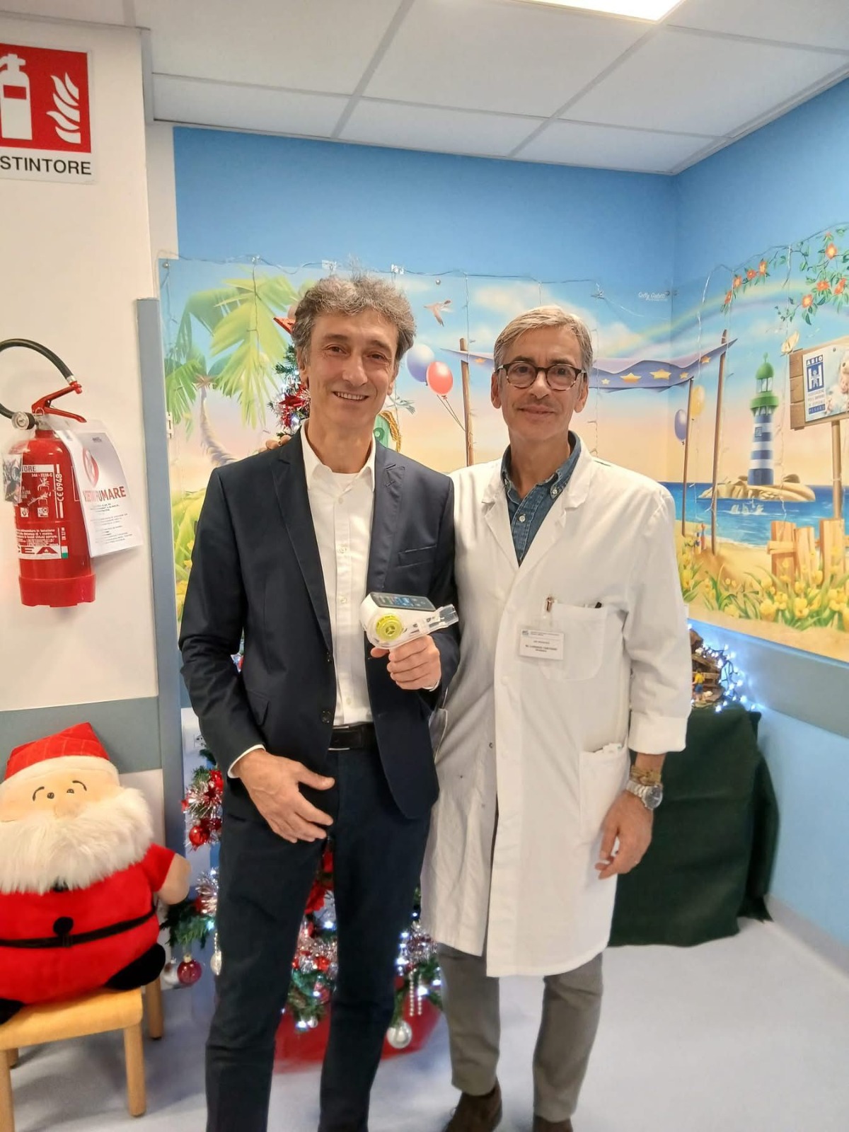L’Associazione “Renato è” ha donato un Oscillometro ad impulso (IOS) all’Unità Operativa di Pediatria di Pesaro, uno strumento d’avanguardia per la diagnosi delle patologie respiratorie. “Grazie a questo strumento” – spiega il Direttore della Pediatria Lorenzo Tartagni – “potremo eseguire prove di funzionalità respiratoria in modo non invasivo anche su bambini piccolissimi o non collaboranti, garantendo precisione senza stress per il paziente”.
