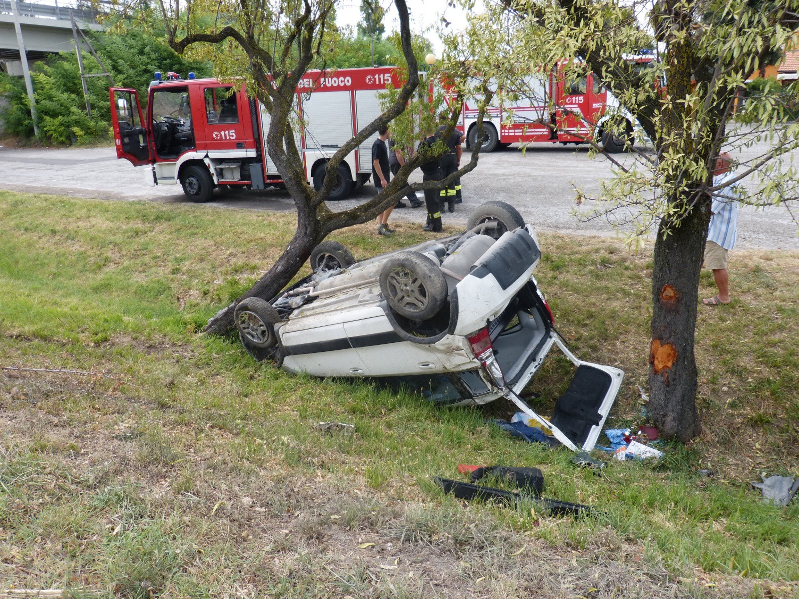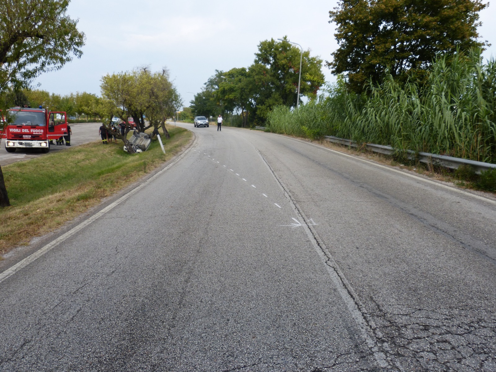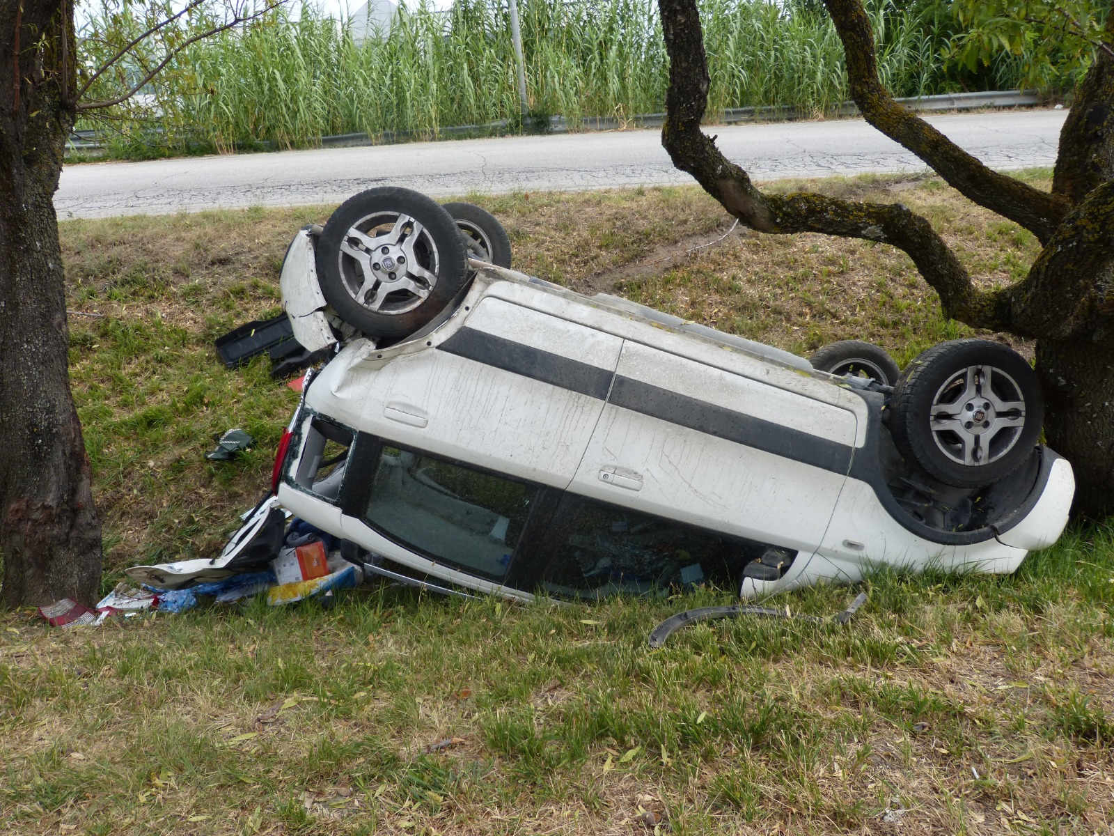 FANO – Incidente stradale intorno alla 15 di oggi pomeriggio a Bellocchi di Fano, di fronte al Biricocco. Una Panda bianca, con a bordo madre e figlia minorenne, si è cappottata finendo la corsa tra due alberi, sul ciglio un po’ in pendenza della strada. La conducente dell’auto, una donna del posto di 52 anni è rimasta incastrata nell’abitacolo dell’auto ed è stata liberata dai Vigili del fuoco, mentre la figlia 15enne è riuscita a liberarsi da sola. Ignote le cause dell’incidente, anche se a quell’ora, in zona stava leggermente piovendo,quindi è probabile che l’asfalto, reso viscido dalla pioggia, abbia contribuito a mandare fuori strada la macchina. La 52enne è stata portata al Santa Croce di Fano per una serie di accertamenti, tra cui alcune radiografie al collo e alla schiena, e poco fa è stata dimessa con 30 giorni di prognosi. Illesa la figlia. Per i rilievi di legge è intervenuta la Polizia Locale di Fano coordinata dal comandante Annarita Montagna.