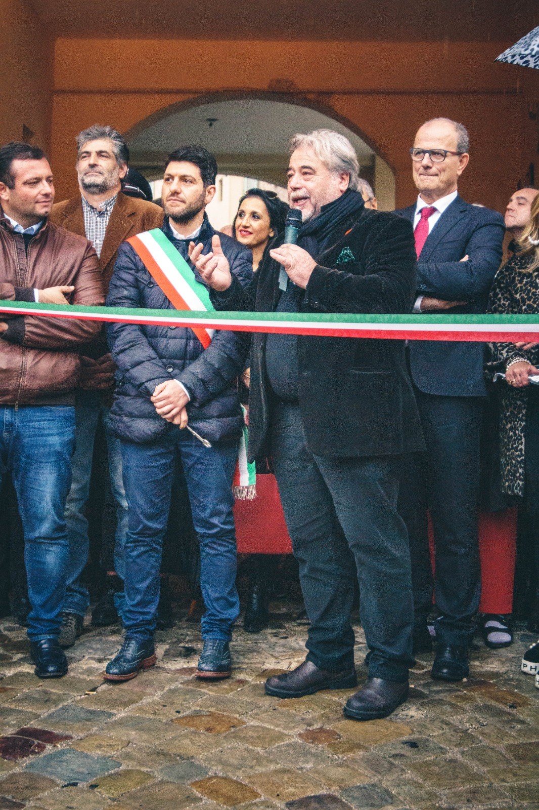 Sicuramente molta l’attesa per il momento dell’inaugurazione, arricchito quest’anno dalla particolarissima rievocazione storica che ha celebrato il rapporto storico tra Venezia e Cartoceto. La città dell’olio infatti, all’epoca dei Malatesta, attraverso il porto di Fano, riforniva la Serenissima di olio per l’illuminazione di Piazza San Marco e degli appartamenti del Doge, in cambio della protezione della potenza cittadina veneta. A raggiungere Cartoceto, assieme alla delegazione del Comune di Venezia, anche una gondola di 11 metri e la rievocazione svolta dalle compagnie teatrali locali, il Buffo e la Pandolfaccia.