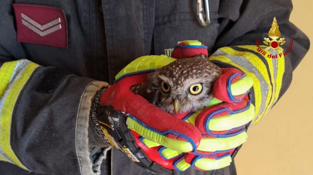 Intervento dei Vigili del fuoco questa mattina a Castelfidardo per il recupero di una civetta rimasta intrappolata all’interno della canna fumaria di un’abitazione in via Gobetti.