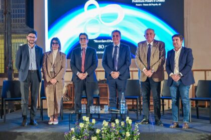 PESARO – Un traguardo che unisce memoria e innovazione, come recita il claim scelto per l’occasione ‘Ricordare il futuro’. Nel salone Metaurense della Prefettura di Pesaro e Urbino, Confcommercio Marche Nord ha celebrato l’ottantesimo anniversario della sua fondazione. Lo ha fatto insieme a chi ha reso e renderà ancora grande questa solida associazione di categoria, fondata il 31 luglio del 1945. Un momento di confronto, approfondimento e riflessione, condiviso con le istituzioni, imprese, associazioni e sindacati che hanno voluto essere presenti per rendere omaggio a un rilevante pezzo di storia del territorio. Fondata il 31 luglio del 1945 da 27 commercianti, assistiti dal notaio Giuseppe Fabbri, Confcommercio Marche Nord è la più grande associazione di categoria della provincia, con quasi 4mila associati, 13 uffici zonali e circa 100 tra dipendenti e collaboratori.