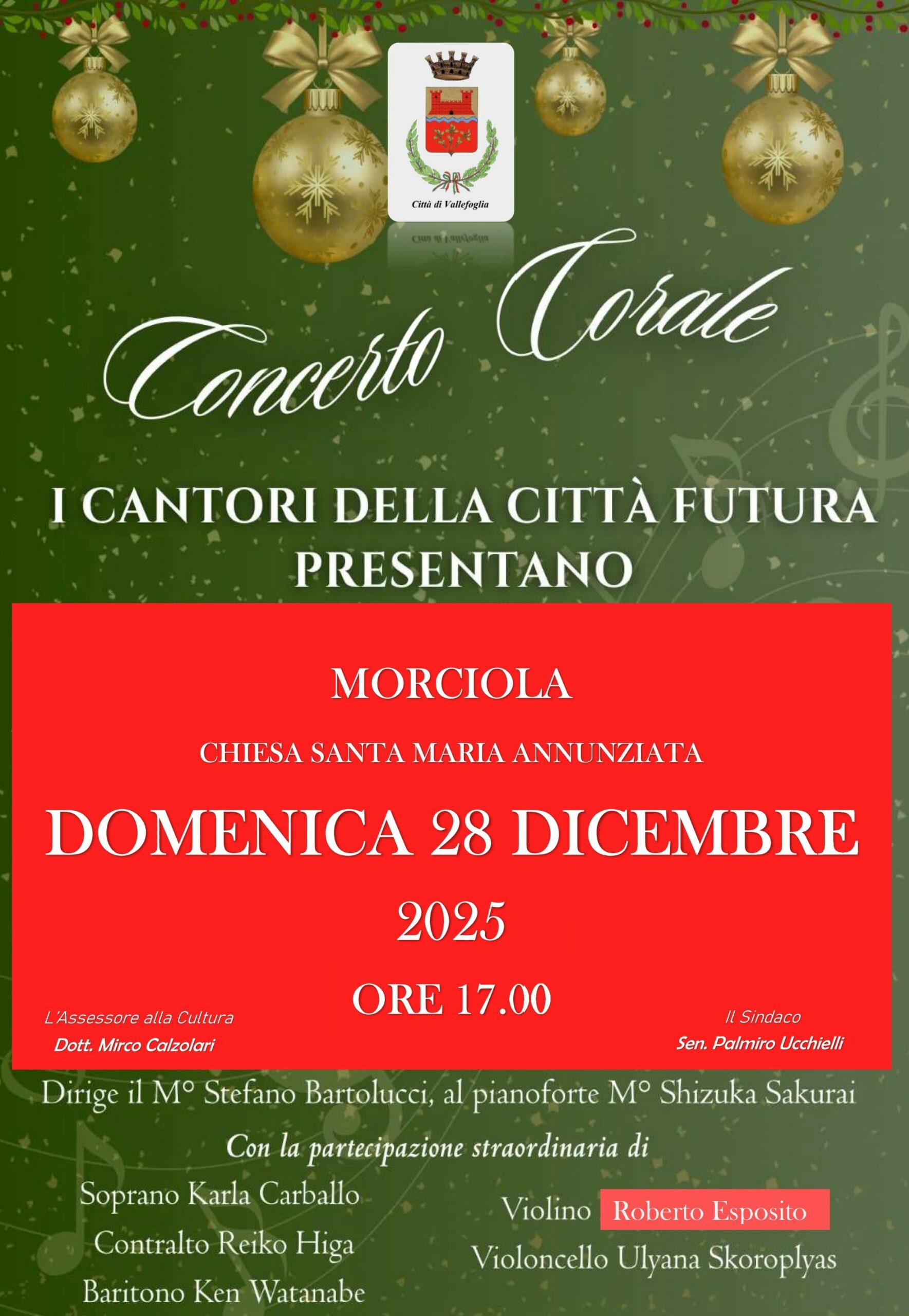 VALLEFOGLIA – Domenica 28 dicembre 2025, alle ore 17.00, presso la Chiesa di Santa Maria Annunziata di Morciola, si terrà un concerto corale a cura del coro “I Cantori della Città Futura”.