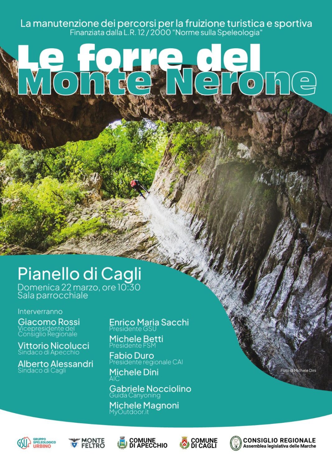 Un’importante occasione per presentare gli interventi messi in campo dal gruppo GSU nei Comuni di Apecchio e Cagli e per approfondire il tema dei percorsi per la fruizione turistica e sportiva in particolare delle Forre del Monte Nerone, un patrimonio naturale di grande valore per il nostro territorio. All’incontro oltre al Vicepresidente del consiglio Regionale Giacomo Rossi, interverranno anche il Sindaco di Apecchio Vittorio Nicolucci, il Sindaco di Cagli Alberto Alessandri, insieme a rappresentanti del mondo speleologico, escursionistico e turistico come Enrico Maria Sacchi, Michele Betti, Fabio Duro, Michele Dini, Gabriele Nocciolino e Michele Magnoni. Un confronto ampio per mettere insieme competenze diverse e visioni condivise sul futuro di quest’area nell’ambito dei percorsi turistici e sportivi.