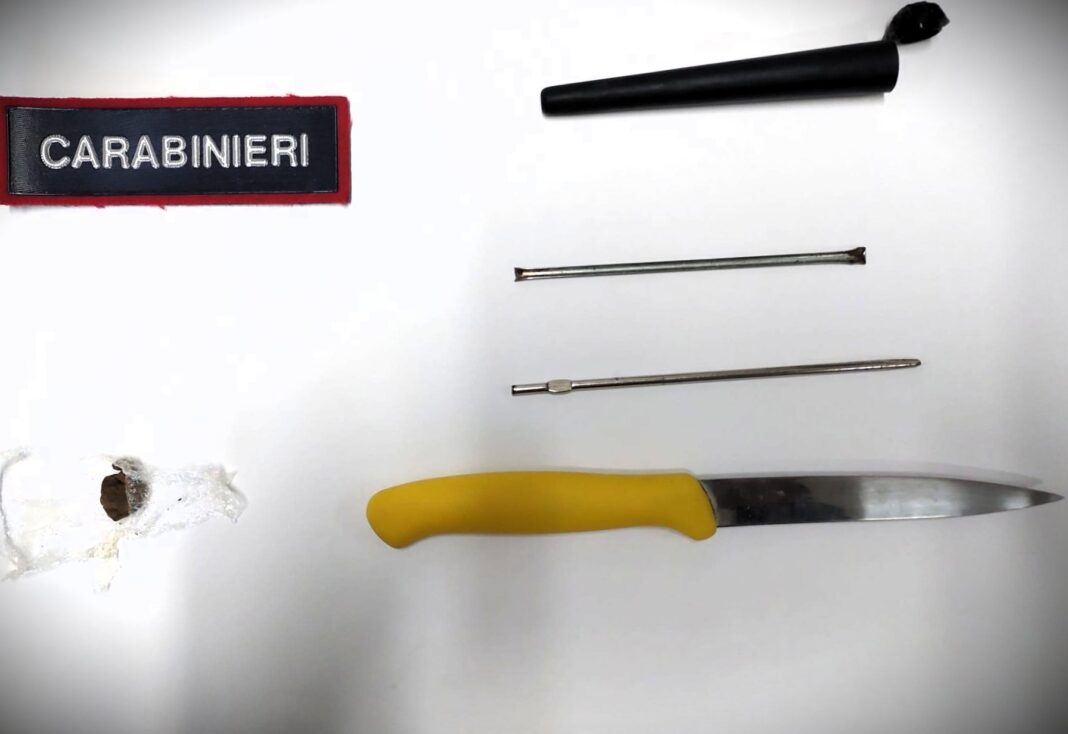 Nella mattinata di ieri i militari dell’Aliquota Radiomobile della Compagnia di Fabriano hanno controllato, nel centro cittadino, un’auto a noleggio sospetta con a bordo un trentottenne napoletano e un diciannovenne egiziano, entrambi residenti in Campania e già noti alle forze dell’ordine per presunte truffe ai danni di anziani. Non avendo fornito una valida giustificazione sulla loro presenza in città, i Carabinieri hanno proceduto a perquisizione personale e veicolare. Durante il controllo sono stati rinvenuti un coltello di 22 centimetri, due piccoli grimaldelli da effrazione, un grammo di hashish occultato nei pantaloni del diciannovenne e una carta d’identità alterata, priva di microchip, in possesso del trentottenne.
