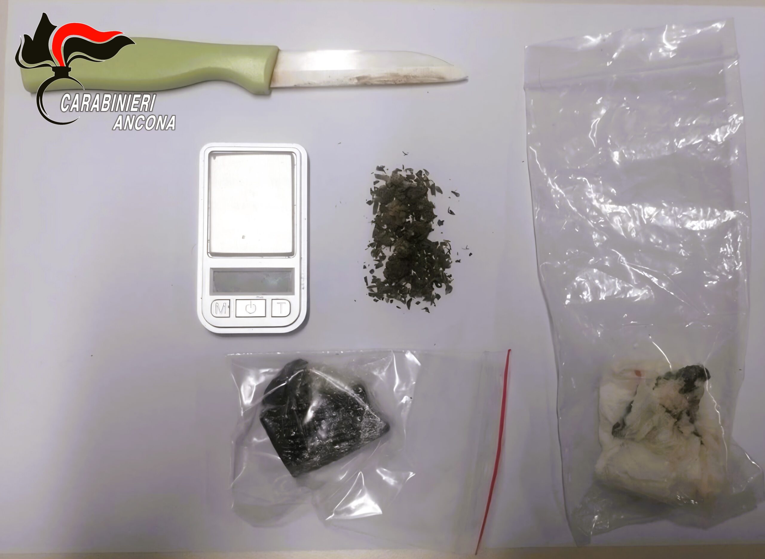 FABRIANO – I Carabinieri dell’Aliquota Radiomobile della Compagnia di Fabriano hanno denunciato all’AG minorile un sedicenne italiano del luogo, per spaccio di sostanze stupefacenti. Ad attivare i militari è stata la segnalazione alla Centrale Operativa di un privato cittadino, che transitando in strada aveva visto un ragazzo depositare qualcosa di sospetto all’interno di una fessura in un muretto di contenimento in pieno centro storico a Fabriano. Raccolta la segnalazione, una “gazzella” della Radiomobile si è recata immediatamente sul posto sorprendendo ancora il giovane nei pressi del posto indicato dal testimone. Dopo un’approfondita ricerca nel luogo descritto, i Carabinieri hanno quindi rinvenuto, in un anfratto utilizzato come imbosco, 16 grammi di cocaina e 11 grammi di hashish, molto probabilmente destinati allo spaccio viste le consistenti quantità e la presenza nella medesima cavità anche di un bilancino di precisione. Nella successiva perquisizione presso l’abitazione del giovane sono stati rinvenuti altri 1,24 gr. di marijuana ed un coltello da cucina ancora sporco di residui di hashish. Al termine delle operazioni il minore è stato affidato ai propri genitori.