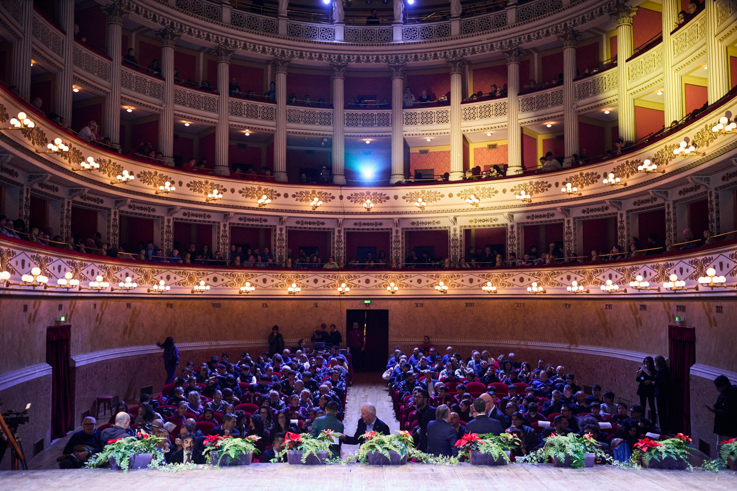 FANO – Il Teatro della Fortuna, gremito in ogni ordine di posto, ha ospitato ieri la seconda edizione del Galà dello Sport, trasformandosi in un luogo di emozioni, racconti e colori. Una serata che ha celebrato l’intera comunità sportiva fanese: atleti, tecnici e associazioni che ogni giorno contribuiscono a rendere Fano una delle città più dinamiche e partecipate della regione. Sul palco sono saliti 115 atleti e 38 squadre capaci di distinguersi a livello provinciale, regionale, nazionale e internazionale.