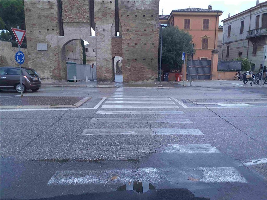 La vettura, proveniente da viale Buozzi in direzione Ancona, dopo aver superato la rotatoria ha urtato la signora che stava attraversando in direzione mare–monte.