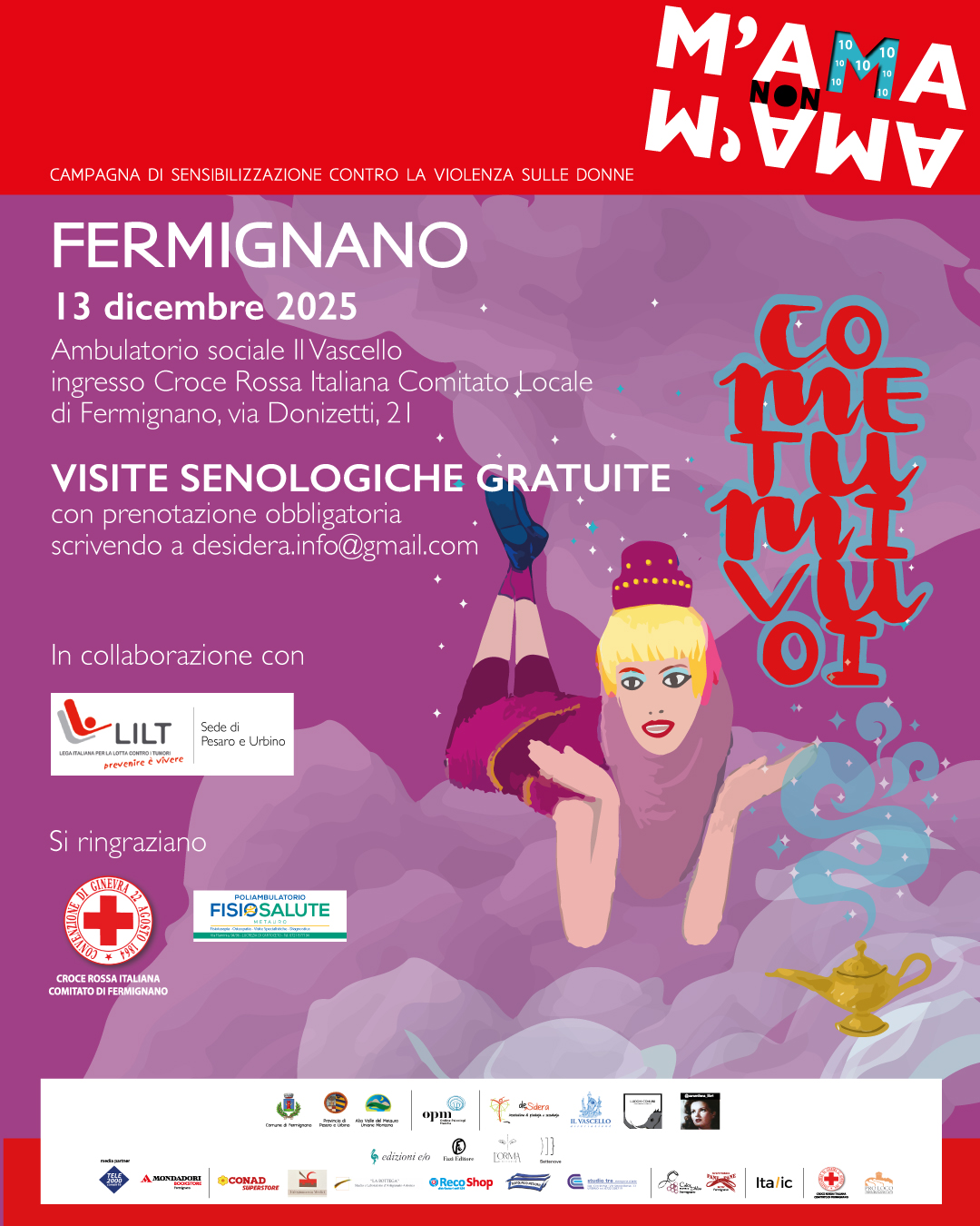 L’evento è a cura di M’ama non M’ama con LILT Pesaro e Urbino ODV, in collaborazione con Croce Rossa Italiana comitato di Fermignano e Fisiosalute Metauro.