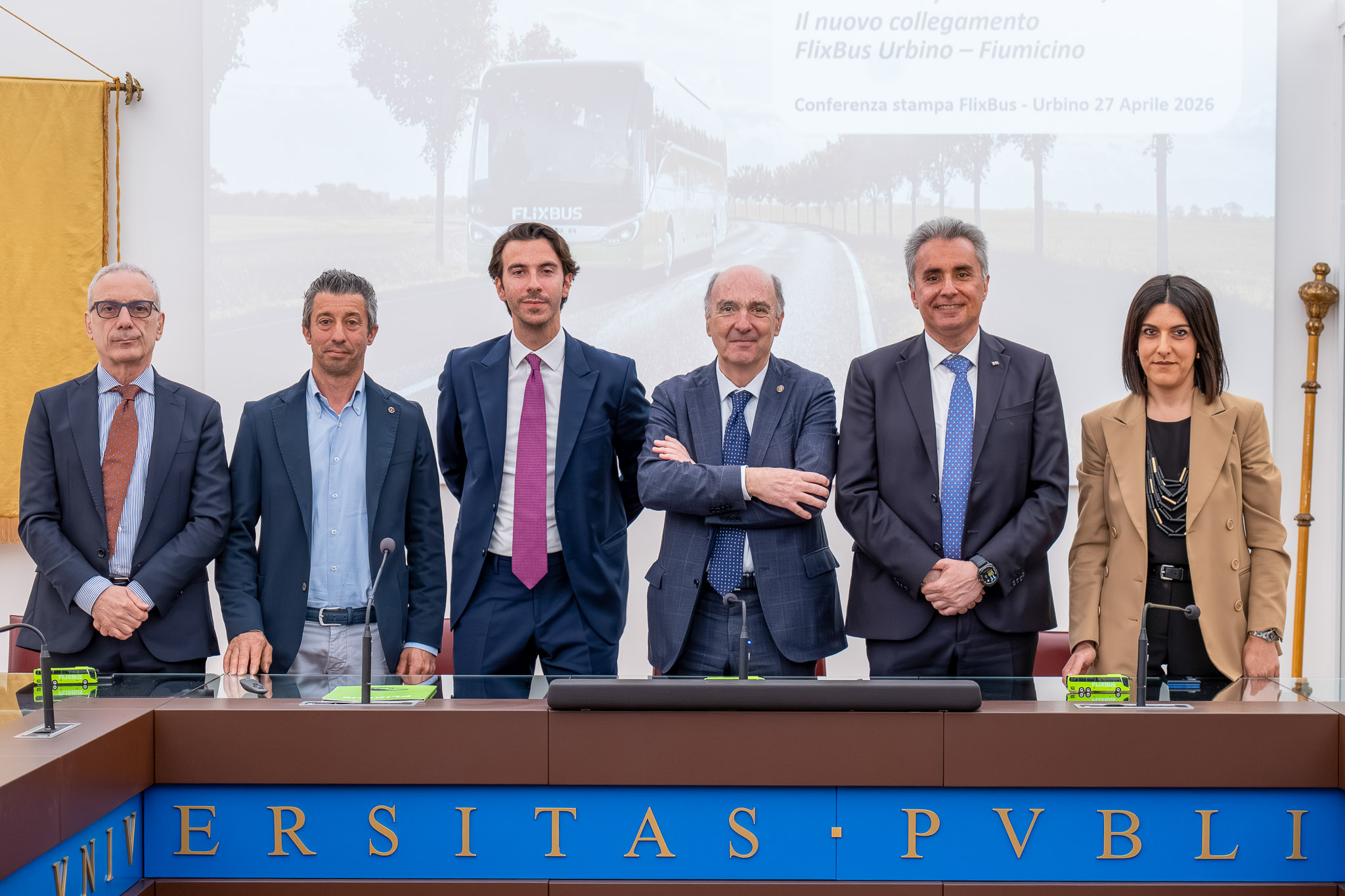 Alla conferenza, aperta dal Rettore Giorgio Calcagnini, erano presenti l’On. Antonio Baldelli della Commissione Trasporti della Camera dei Deputati, il Vicesindaco di Urbino Giulia Volponi, il Direttore Generale dell’Università di Urbino Alessandro Perfetto, il Responsabile Relazioni Istituzionali di FlixBus Guglielmo Pilutti e Lorenzo Pierpaoli, Amministratore Unico dell’azienda LolliBus, partner di FlixBus che opererà il collegamento.