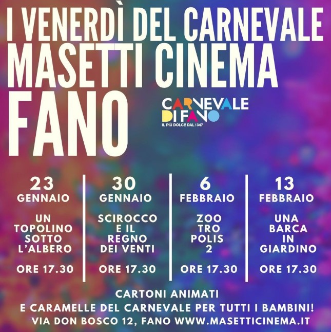 FANO – Per celebrare degnamente lo spettacolare periodo legato agli eventi del Carnevale di Fano, anche il Cinema Masetti ha organizzato una collaborazione che si articolerà in una serie di proiezioni pomeridiane destinate ai più piccoli.
