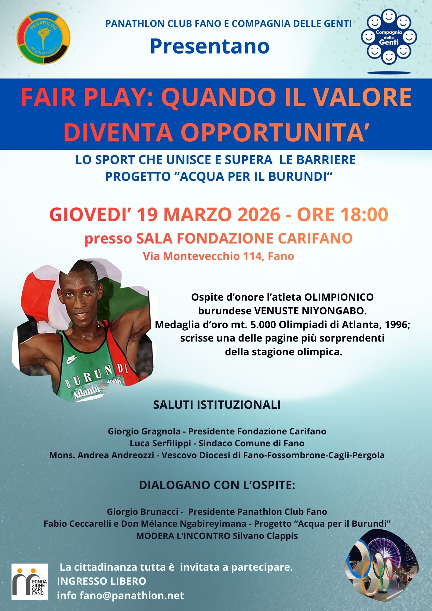 FANO – Si intitola “Fair Play: quando il valore diventa opportunità” e avrà un campione olimpico simbolo dei valori autentici dello sport il prossimo evento promosso da Panathlon International Club di Fano, pronto a riunirsi per la prima volta dopo il rinnovo delle proprie cariche statutarie. L’interessante iniziativa, aperta alla cittadinanza, si terrà giovedì 19 marzo, dalle ore 18, nella suggestiva e prestigiosa cornice della Sala di Rappresentanza della Fondazione Carifano in via Montevecchio 114. Ospite d’onore dell’incontro-confronto sarà infatti Venuste Niyongabo, lo straordinario atleta burundese passato alla storia per la medaglia d’oro conquistata nei 5000 metri ai Giochi Olimpici di Atlanta 1996. La sua impresa negli Stati Uniti fu eccezionale sia dal punto di vista sportivo che per il valore simbolico per il proprio Paese, considerato che nessun altro suo connazionale è riuscito a salire sul podio alle Olimpiadi e che quegli anni il Burundi viveva una fase piuttosto difficile sul piano politico e sociale. In realtà Niyongabo all’epoca non era un autentico outsider, ma era indicato tra i favoriti nella specialità dei 1500 metri essendosi aggiudicato il bronzo ai Mondiali giusto nell’edizione 1995 a Göteborg in Svezia. A sorpresa ad Atlanta decise però di concentrarsi sui 5000, una scelta tattica che pagò in virtù di una prestazione sensazionale che gli consentì di precedere al traguardo il kenyota Paul Bitok ed il marocchino Khalid Boulami. La vita personale e sportiva di Niyongabo, che oggi ha 53 anni e da diverso tempo vive con la sua famiglia in Italia, è tuttora portata come esempio di determinazione, spirito di sacrificio e resilienza abbinati al grande talento. Il dialogo con lui sarà moderato dal giornalista Silvano Clappis e vedrà anche la partecipazione di Giorgio Brunacci, presidente del Panathlon Club Fano, e di Fabio Ceccarelli e Don Mèlance Ngabireyimana, che condivideranno la propria testimonianza legata al progetto di solidarietà e cooperazione a sostegno delle comunità locali denominata “Acqua Burundi”. Il convegno, che intende offrire un’occasione di riflessione sul valore educativo dello sport e sul ruolo del fair play come principio di generare opportunità, connessioni tra culture diverse e crescita delle comunità, si aprirà coi saluti istituzionali del presidente della Fondazione Carifano, Giorgio Gragnola, del sindaco di Fano, Luca Serfilippi, e del vescovo di Fano, Monsignor Andrea Andreozzi. L’ingresso è libero e gratuito fino ad esaurimento dei posti disponibili, con invito a partecipare esteso dal Panathlon Club di Fano ad appassionati di sport, mondo della scuola ed associazionismo per condividere questo stimolante momento dedicato ai principi più puri dello sport.