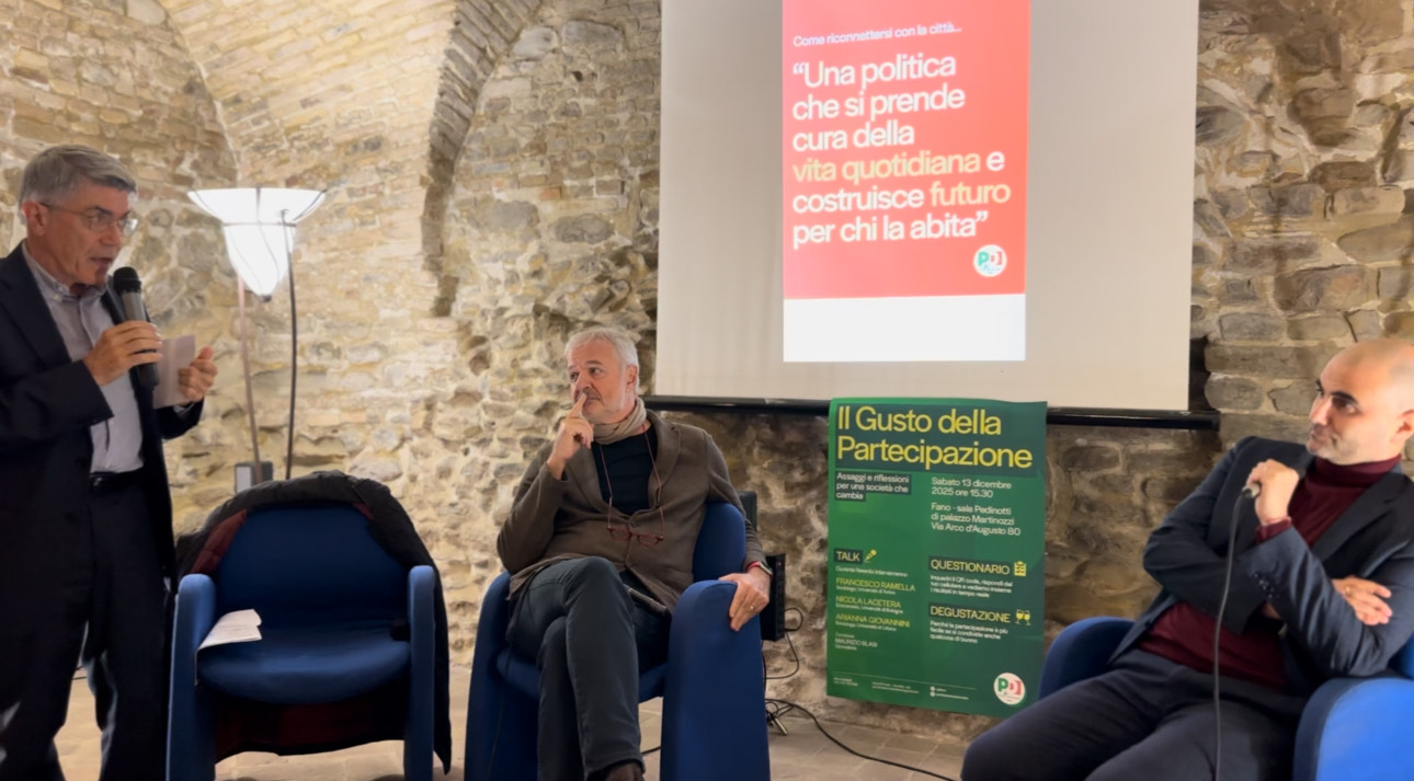 Circa cento persone hanno riempito sabato pomeriggio la sala Pedinotti di Palazzo Martinozzi a Fano per “Il Gusto della Partecipazione – assaggi e riflessioni per una società che cambia”, l’incontro promosso dal PD Fano con un format sperimentale per aprire una nuova fase di ascolto e confronto con la città. Guidati dal giornalista Maurizio Blasi, gli interventi del sociologo Francesco Ramella (Università di Torino) e dell’economista Nicola Lacetera (Università di Bologna) hanno offerto chiavi di lettura sul rapporto fra politica, società e partecipazione, con particolare attenzione alle giovani generazioni, ai territori e con uno sguardo alla crisi del modello di sviluppo e all’influenza delle nuove tecnologie.