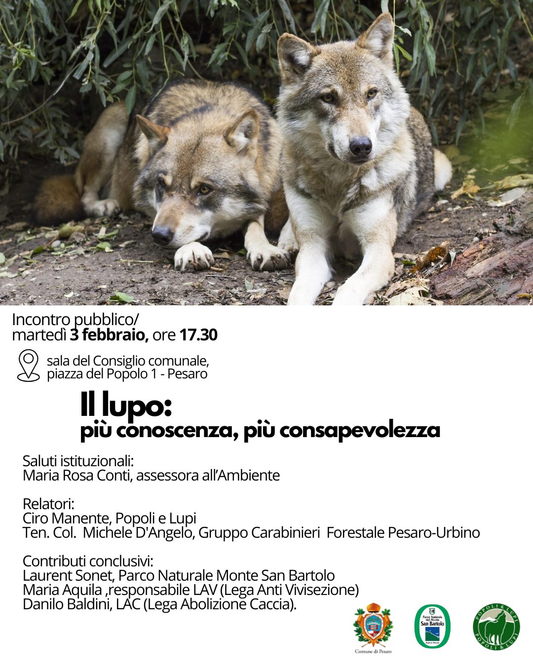 PESARO – Martedì 3 febbraio, alle ore 17.30, nella sala del Consiglio Comunale (piazza del Popolo 1 – Pesaro), si terrà l’incontro pubblico dal titolo “Il lupo: più conoscenza, più consapevolezza”.