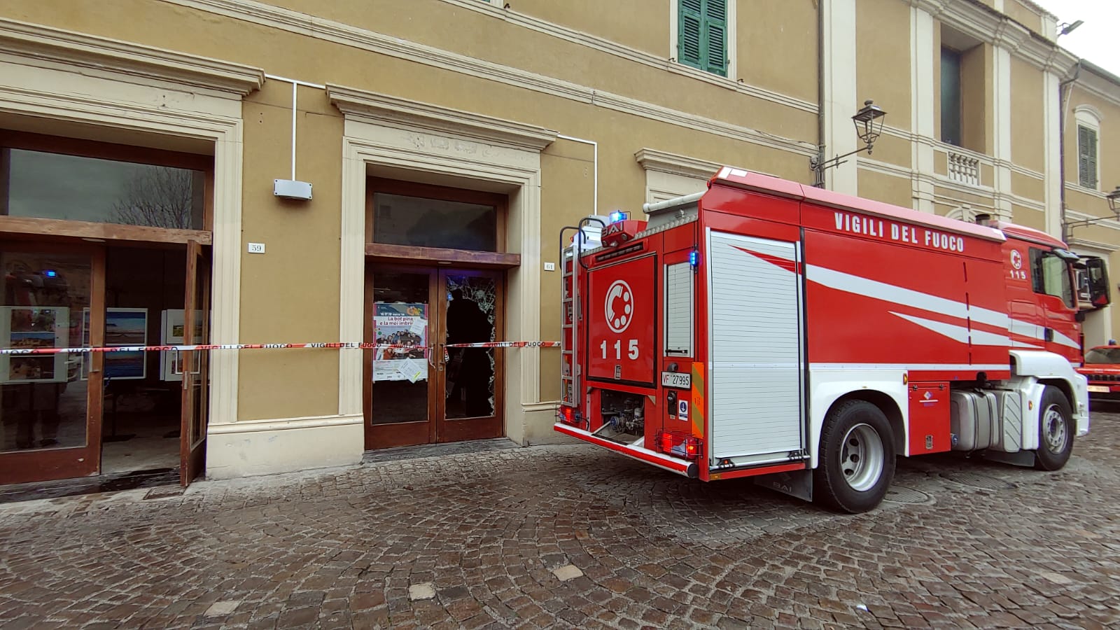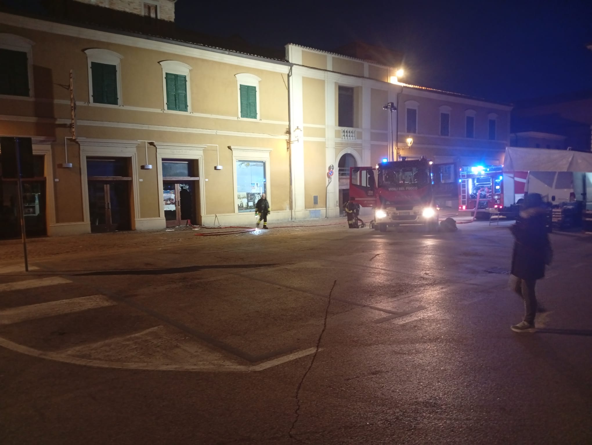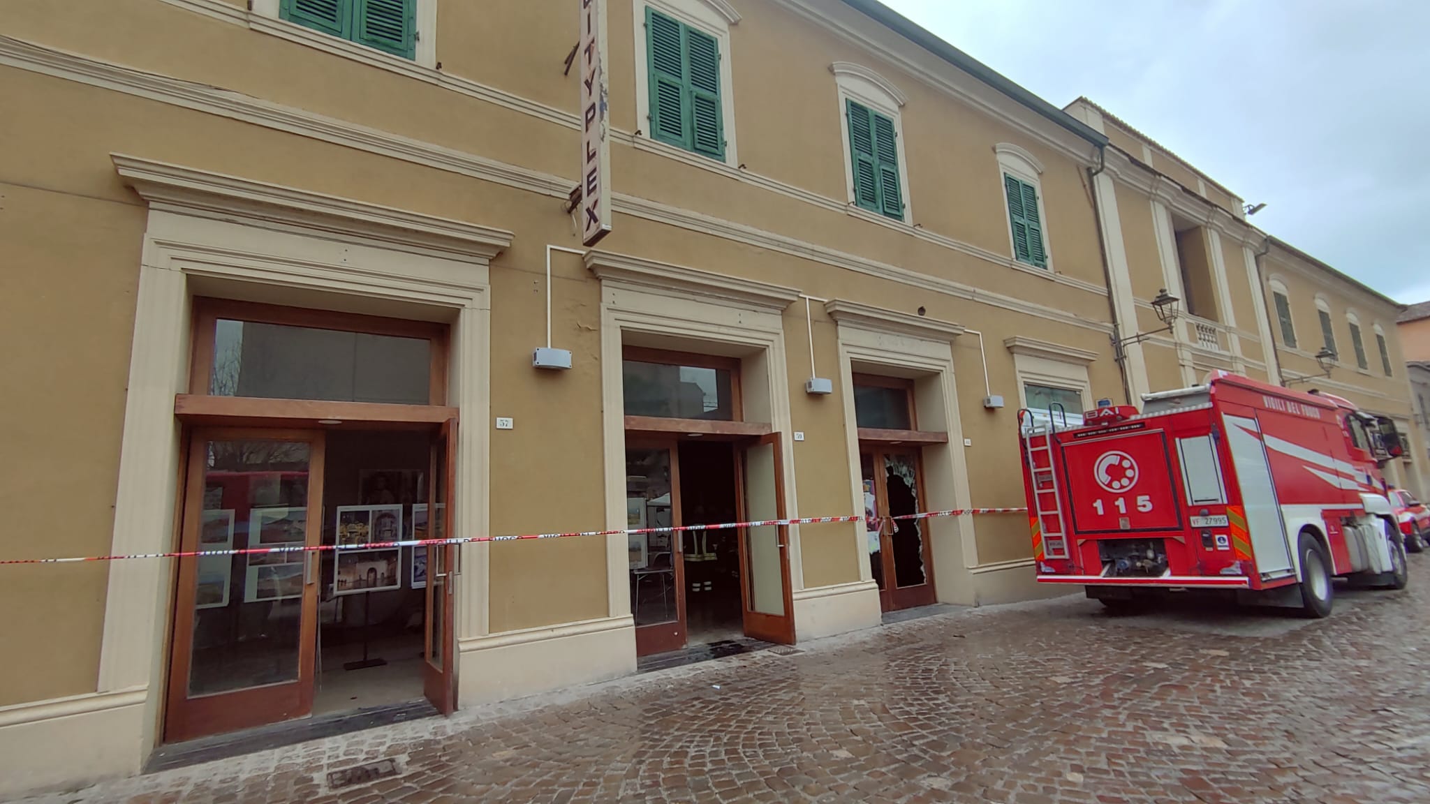 FANO – Momenti di apprensione questa mattina al Cinema Politeama di Fano, dove si è sviluppato un incendio che ha richiesto l’immediato intervento dei Vigili del Fuoco. Le operazioni di spegnimento e messa in sicurezza risultano ancora in corso. Sul posto sono intervenuti i pompieri con due mezzi. Per accedere ai locali, i soccorritori hanno dovuto forzare l’ingresso, rompendo i vetri di una porta, come documentato anche da alcune immagini scattate sul posto. L’area è stata prontamente delimitata per garantire la sicurezza e consentire lo svolgimento delle operazioni in condizioni controllate. Sono in corso accertamenti per chiarire le cause dell’incendio.