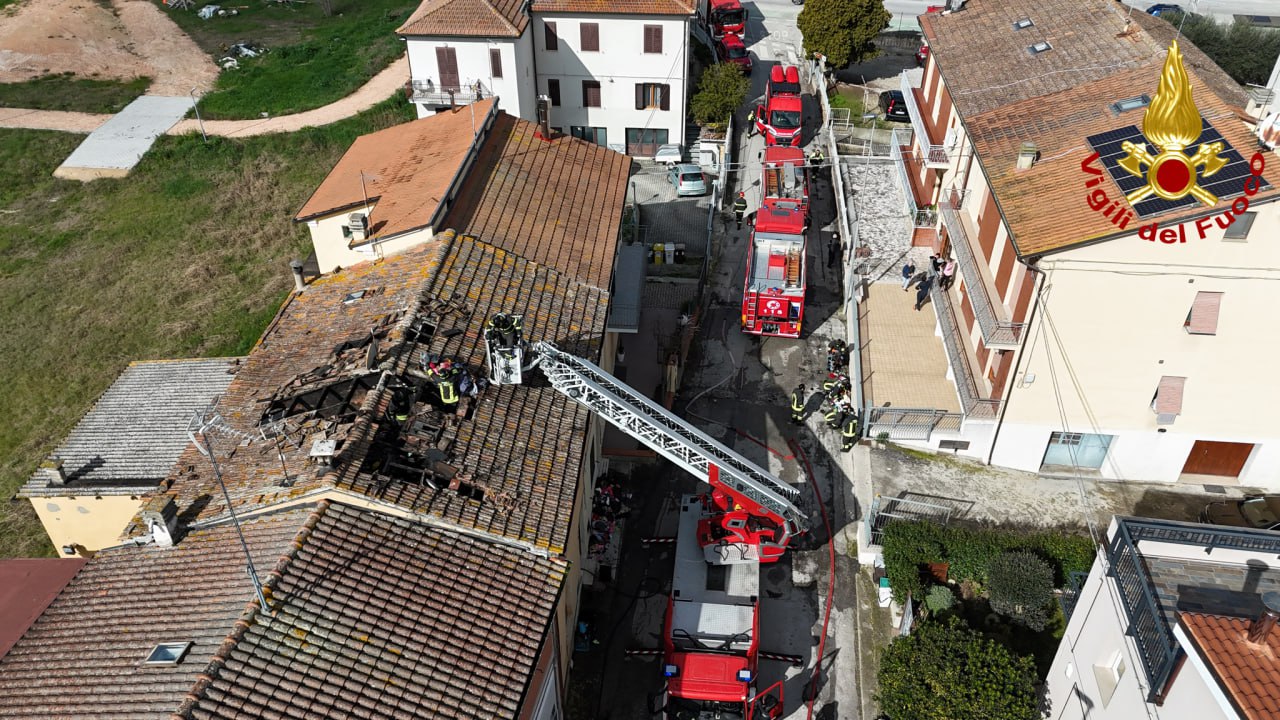 JESI – Paura questa mattina in via Zara per un incendio che ha colpito una palazzina di due piani. L’allarme è scattato poco dopo le ore 08:00, quando il fumo e le fiamme hanno iniziato a sprigionarsi dal sottotetto dell’edificio, rendendosi visibili nel quartiere. La macchina dei soccorsi si è attivata immediatamente con un dispiegamento considerevole di forze. Sul posto sono confluite d’urgenza la squadra dei Vigili del Fuoco di Jesi e quella di Ancona. Per gestire l’emergenza e raggiungere i punti più critici della copertura, i pompieri hanno operato con sei automezzi, tra cui un’autoscala, fondamentale per attaccare l’incendio dall’alto e circoscrivere il rogo prima che potesse propagarsi ulteriormente. Nonostante la tempestività dell’intervento, l’evento ha causato gravi danni alla struttura: il tetto risulta pesantemente compromesso e i locali sottostanti hanno subito conseguenze dirette a causa delle fiamme e delle operazioni di spegnimento. Fortunatamente, non si registrano persone coinvolte o ferite nell’episodio. Al termine delle operazioni di spegnimento e dopo i primi rilievi tecnici per valutare la stabilità dell’edificio, i Vigili del Fuoco hanno dichiarato la struttura non fruibile. La palazzina resterà dunque chiusa e non accessibile fino a quando non saranno effettuati i necessari lavori di ripristino per garantire il ritorno alle piene condizioni di sicurezza.
