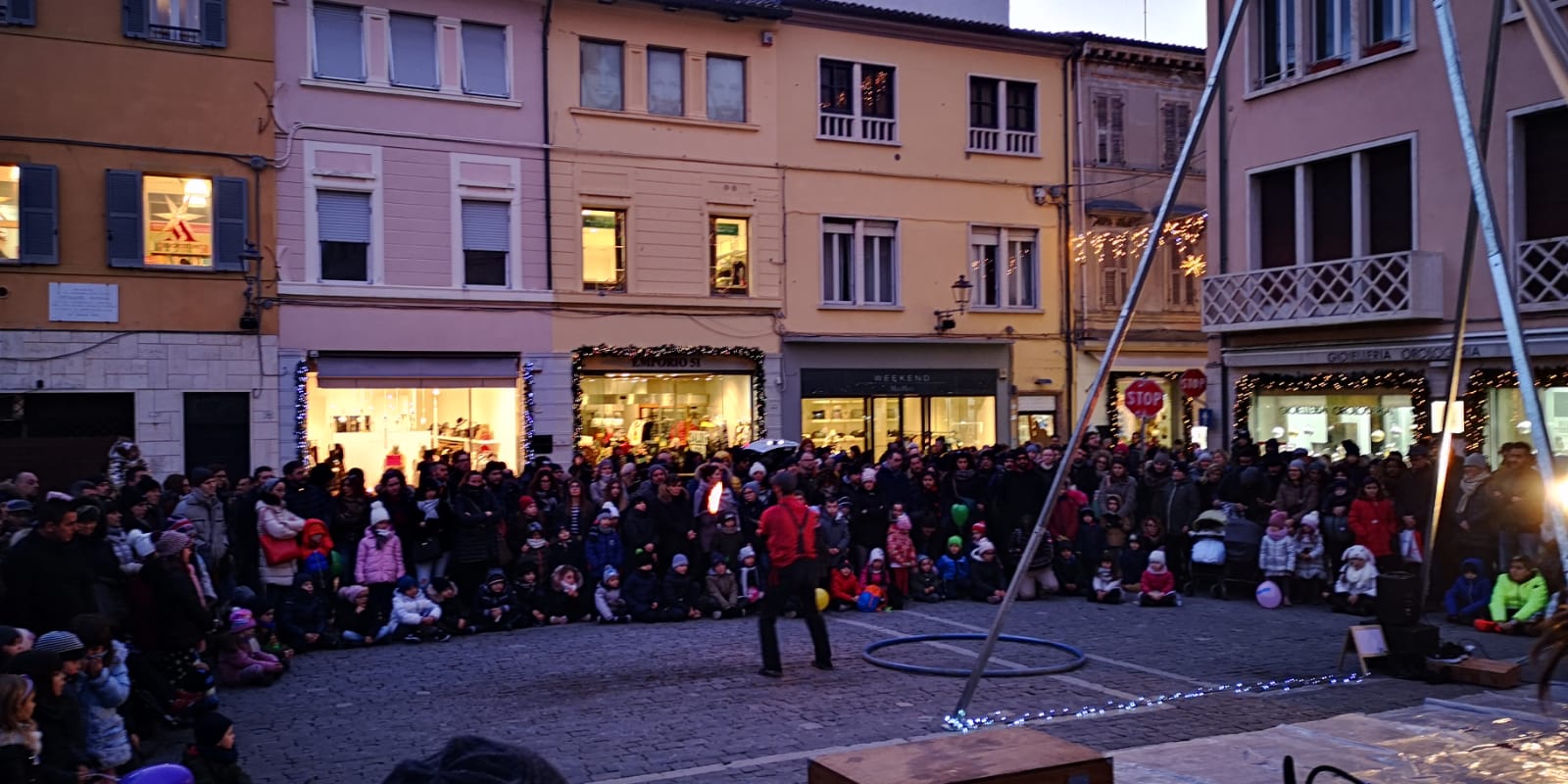 La festa si è poi spostata in piazza XX Settembre, dove già dalle 15.30, una serie di laboratori tra cui il Ludobus, K-artone ed altre iniziative, hanno intrattenuto bambini e famiglie. Alle 16.30 i presenti hanno dovuto alzare nuovamente gli occhi al cielo per lo spettacolo suggestivo di “Circo verticale” con “Le Appese” che si sono esibite in una danza acrobatica aerea, tra fuoco, interpretazioni e innovazione, il tutto a svariati metri d’altezza.