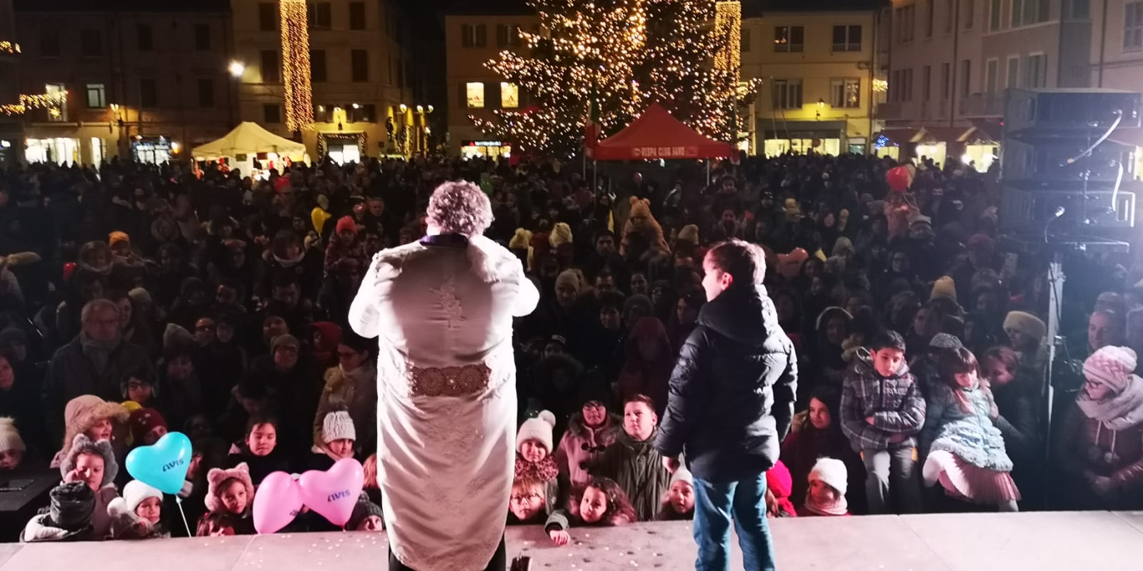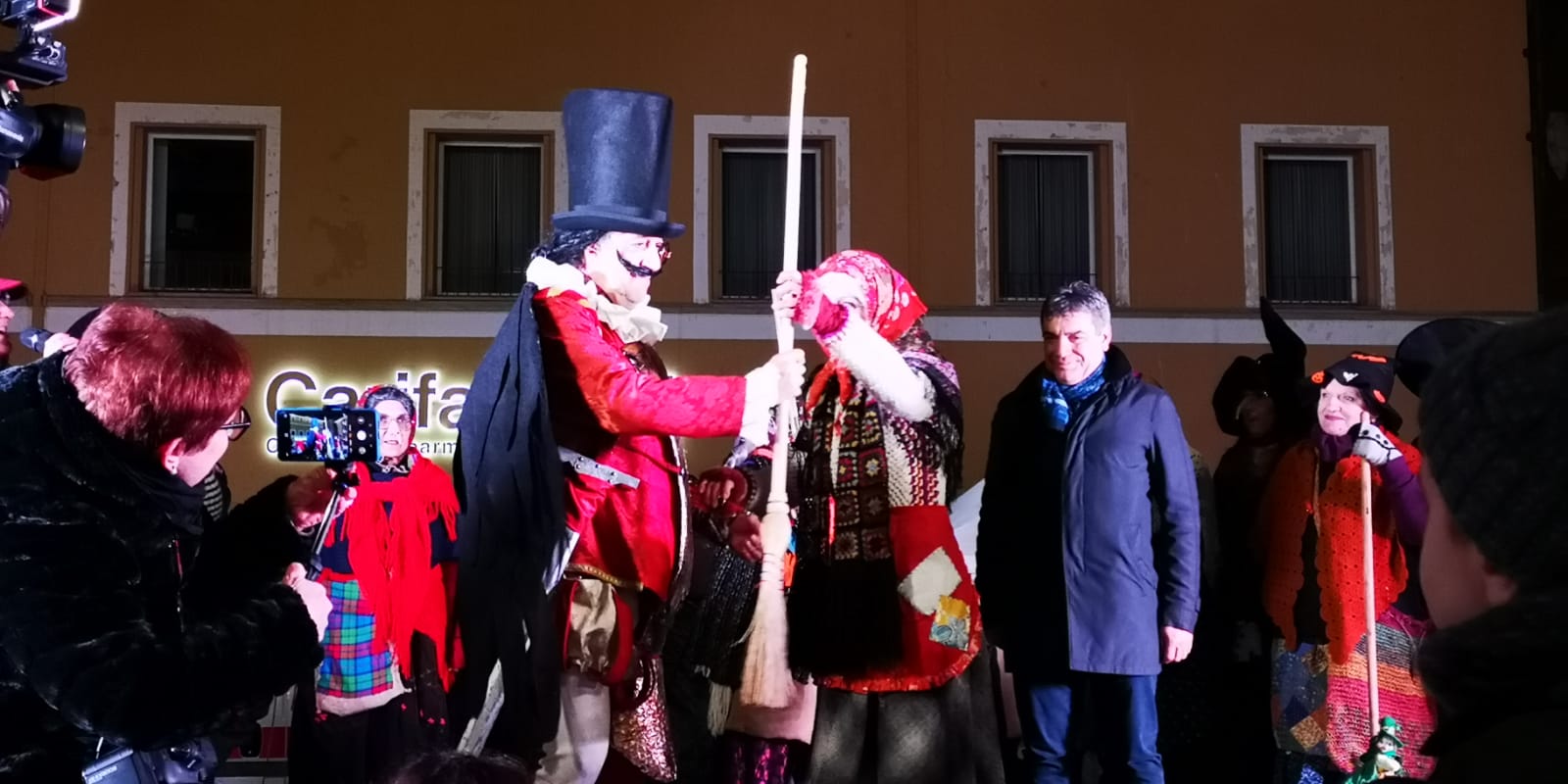 Fano, 6 gennaio 2020 – Il Natale Pìù 2019 saluta la città e passa il testimone al Carnevale 2020, con una giornata fatta di laboratori, befane volanti, grandi spettacoli e tanta dolcezza per tutti i bambini presenti. Un vero e proprio passaggio di consegne, quello che si è svolto al termine della giornata di oggi in piazza XX Settembre quando la vecchina con la scopa, dopo aver consegnato oltre 1200 calze a tutti I bambini presenti, aiutata dalle mitiche befane del Vespa Club Fano e dell’associazione Viviamo Centinarola, ha consegnato la sua scopa al Vulòn e ha aperto quindi il periodo più colorato dell’anno: quello del Carnevale.