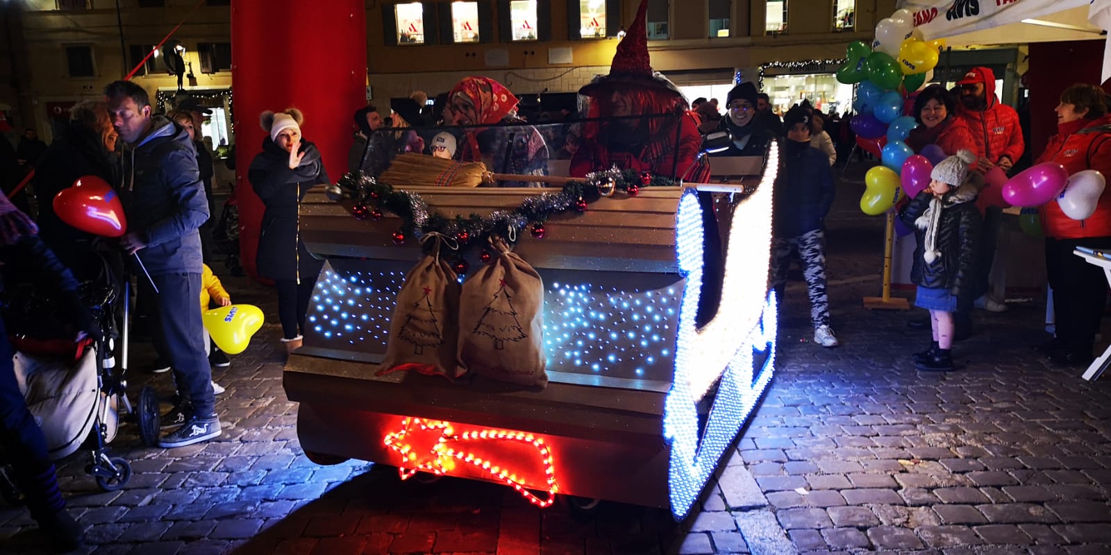 Si è tornti sulla terra ferma alle 17.30 quando personaggi magici e giochi di luci del Circo Bianco hanno fatto da apripista all’arrivo della Vecchina che insieme alle sue aiutanti si è presentata in piazza a bordo di una luminosissima slitta. Le Befane hanno poi consegnato le sopracitate 1.200 calze ricche di dolciumi. Contestualmente è stato allestito un corner dove i bambini hanno potuto gustare dell’ottima cioccolata calda preparata dal Caffè del Pasticciere e dove i grandi si sono scaldati con panettone e vin brulè.