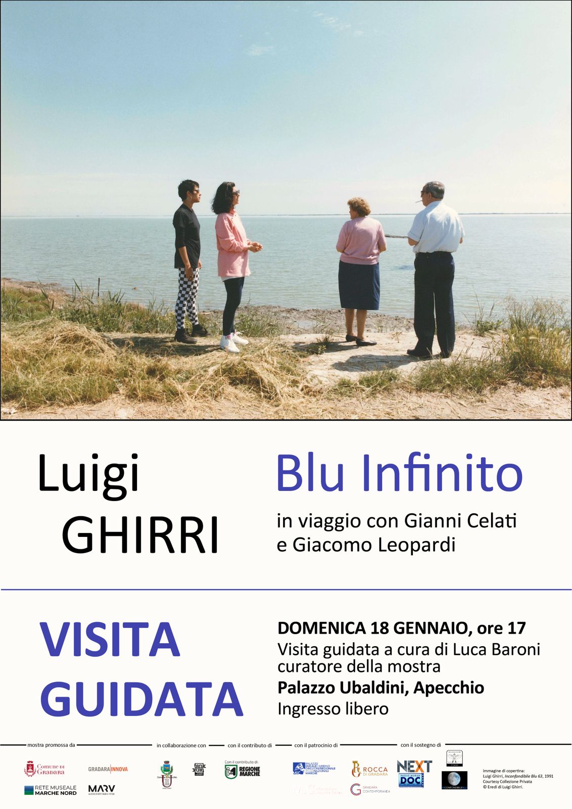 APECCHIO – Un appuntamento di grande rilievo culturale anima il cuore dell’entroterra marchigiano. Domenica 18 gennaio, alle ore 17, a Palazzo Ubaldini di Apecchio, è in programma una visita guidata gratuita alla mostra “Luigi Ghirri. Blu Infinito. In viaggio con Gianni Celati e Giacomo Leopardi”, a cura di Luca Baroni, direttore della Rete Museale Marche Nord e curatore del progetto espositivo.