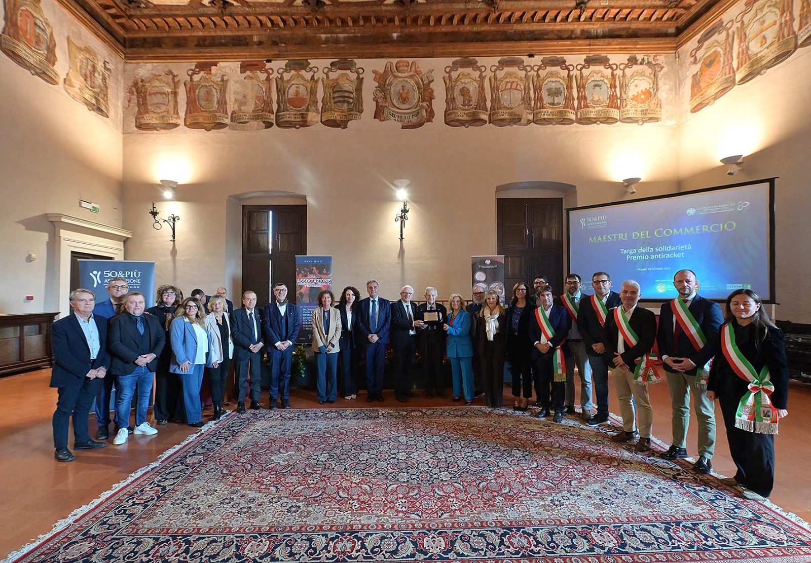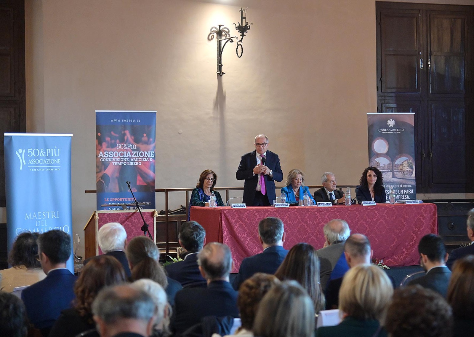 PESARO – Un premio agli imprenditori che hanno contribuito alla crescita della provincia e a chi è impegnato costantemente nella difesa della legalità. La Prefettura di Pesaro Urbino ha ospitato in mattinata la Giornata dei “Maestri del Commercio” organizzata da 50 &Più Pesaro Urbino, l’Associazione degli Over 50 di Confcommercio Marche Nord, la consegna del ‘Premio Antiracket’ al Procuratore della Repubblica di Palermo Maurizio De Lucia e di un Premio speciale, in occasione degli 80 anni di Confcommercio, a Luciano Violante, ex magistrato e Presidente della Camera dei Deputati.
