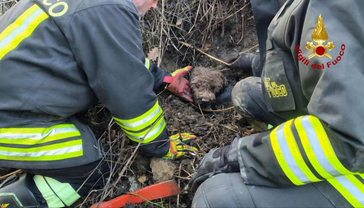 I Vigili del fuoco sono intervenuti poco dopo le ore 15.30 in località Serra di Piastra, nel comune di Lunano, per il soccorso di un cane rimasto intrappolato all’interno di un tubo.