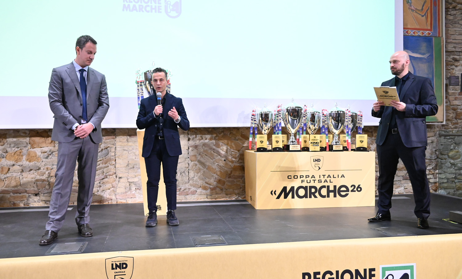 MARCHE – Il sipario sulla primavera dei maxi eventi del futsal italiano si è alzato nella mattinata di giovedì 12 marzo nel favoloso scenario della Mole Vanvitelliana di Ancona, sede della conferenza stampa di presentazione durante la quale sono stati sorteggiati i tabelloni di tutte le Coppe Italia maschili 2026: saranno le Marche, per la seconda stagione consecutiva, a ospitare, dal 20 al 29 marzo in cinque città diverse, le sei corse alle coccarde tricolori, svelate alla presenza delle massime autorità istituzionali e sportive del territorio.