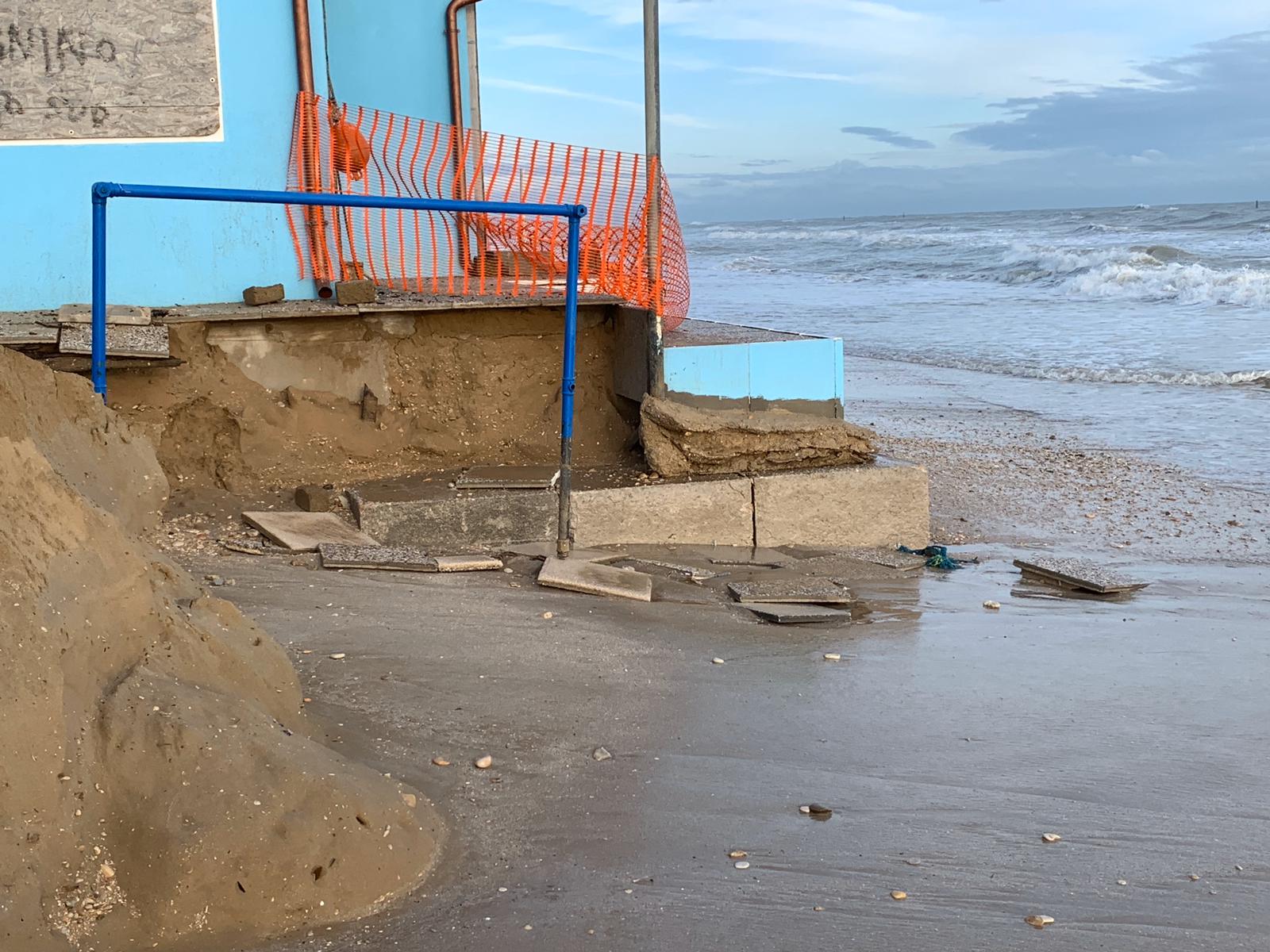Sopralluogo stamane del vicesindaco e assessore all’urbanistica di Fano Cristian Fanesi lungo la costa dopo la mareggiata di questa notte che anche nella zona di Fano ha provocato danni agli stabilimenti balneari. Il mare ha flagellato la spiaggia e in diversi punti ha abbattuto barriere e dighe di sabbia costruite appositamente alla fine della stagione turistica quale riparo dalle mareggiate, arrivando ad allagare uffici e depositi di attrezzature. “Siamo consapevoli – dice in una nota – dei disagi che bagnini e residenti stanno subendo dopo la mareggiata di questa notte. E’ una situazione di emergenza, ma non è una questione solo di scogliere. Già da questa notte la protezione civile C.B. Club Mattei sta monitorando il lungomare dove non si registrano danni ad abitazioni o persone.