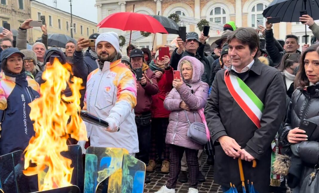 La Fiamma di Milano Cortina 2026 ha sfilato a Pesaro, accendendo, in piazza del Popolo, il braciere olimpico. «Un grandissimo onore – ha commentato il sindaco di Pesaro Andrea Biancani – perché la presenza del braciere olimpico è un riconoscimento riservato a pochissime città italiane, che premia il nostro impegno costante nella promozione dello sport come strumento di inclusione, armonia, fratellanza e rispetto reciproco». Un appuntamento straordinario, che ha visto migliaia di persone salutare in strada la Torcia Olimpica, che puntuale, alle 14:15 è partita per sfilare nelle strade della città partendo da via Flaminia, a Muraglia. Lungo il percorso grande la partecipazione di bambini, famiglie, atleti e cittadini, che hanno accolto la Fiamma con entusiasmo, trasformando il pomeriggio in una festa di emozione e orgoglio pesarese. «Pesaro è stata protagonista di uno dei simboli più forti dell’unità, della convivenza pacifica e dell’etica sportiva mondiale – ha continuato insieme all’assessora allo Sport Mila Della Dora -. È stata anche una straordinaria occasione di promozione per la nostra città e ringrazio tutti i cittadini che hanno partecipato e hanno vissuto questo momento collettivo lungo il percorso con tantissimo entusiasmo. Pesaro ha così offerto alla carovana olimpica l’immagine di una città viva, unita e luminosa, nonostante la pioggia, capace di raccontarsi al mondo attraverso i valori dello sport». Sedici i tedofori, selezionati dalla Fondazione Fiamma Olimpica Milano Cortina 2026, che si sono alternati lungo i 3,2 km complessivi del percorso, attraversando via Flaminia, via Kolbe, via Raggi, via Cialdini, piazza Matteotti, via San Francesco e piazza del Popolo, dove è stato acceso il braciere olimpico. «Orgogliosi – hanno ribadito sindaco e assessora – di essere una delle poche città ad aver avuto questo privilegio». Il percorso è poi proseguito lungo corso XI Settembre, via Cavour e via Mameli, fino al Museo Benelli. Qui, un fuoriprogramma d’eccezione, con il sindaco Andrea Biancani che ha voluto omaggiare la Fiamma Olimpica con uno scatto insieme ad uno dei simboli pesaresi: la Benelli 250 del 1939. Poi la ripartenza in direzione Riccione alle 15. «Abbiamo vissuto un momento storico – hanno concluso – un evento capace di mettere insieme discipline sportive, partecipazione popolare e valori olimpici in un grande abbraccio collettivo. La vera forza di questa giornata è stato il coinvolgimento della comunità: i tedofori hanno rappresentato il mondo dello sport, del volontariato e della cittadinanza attiva. Il passaggio della Fiamma è diventato un simbolo di appartenenza, dignità e coesione sociale».