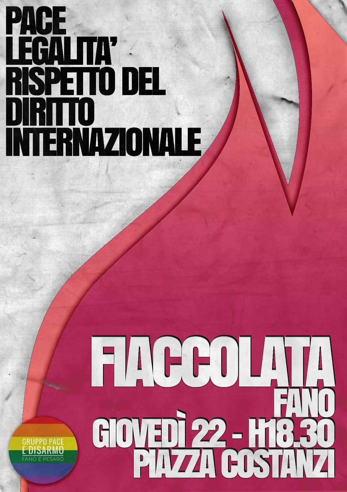 Pace, legalità, rispetto del diritto internazionale. Giovedì la fiaccolata da Piazza Costanzi (Fano)