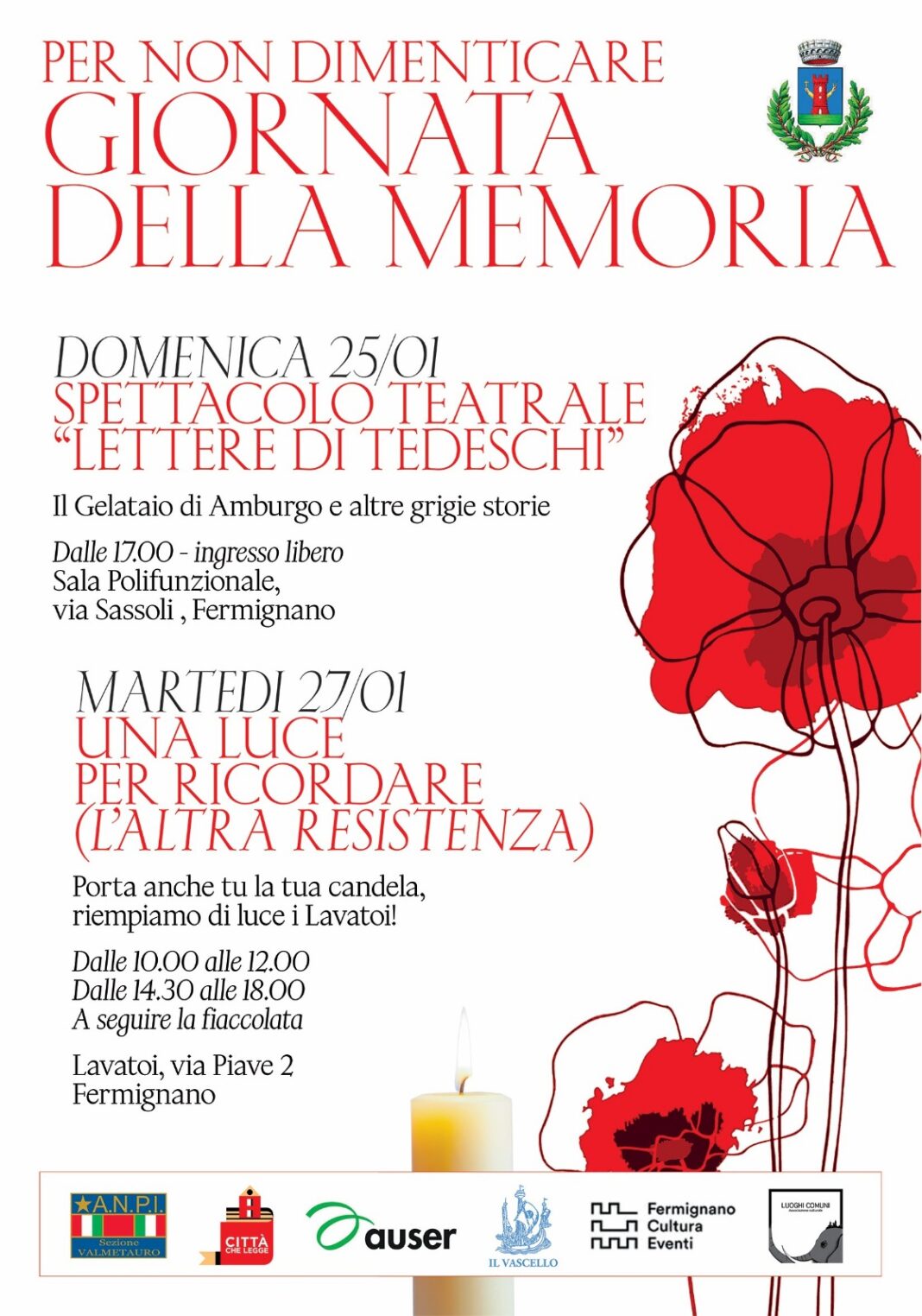 Il secondo momento si terrà martedì 27 gennaio, giornata ufficiale della commemorazione, con “Una luce per ricordare (l’altra Resistenza)”, presso i Lavatoi di via Piave 2, un’iniziativa giunta al quinto anno che ormai è entrata nel cuore dei fermignanesi e non solo. Dalle 10.00 alle 12.00 e dalle 14.30 alle 18.00, cittadini e cittadine sono invitati a portare una candela per contribuire a un gesto collettivo di memoria e luce. A seguire, alle 18, è prevista una fiaccolata, come segno di partecipazione e impegno civile.