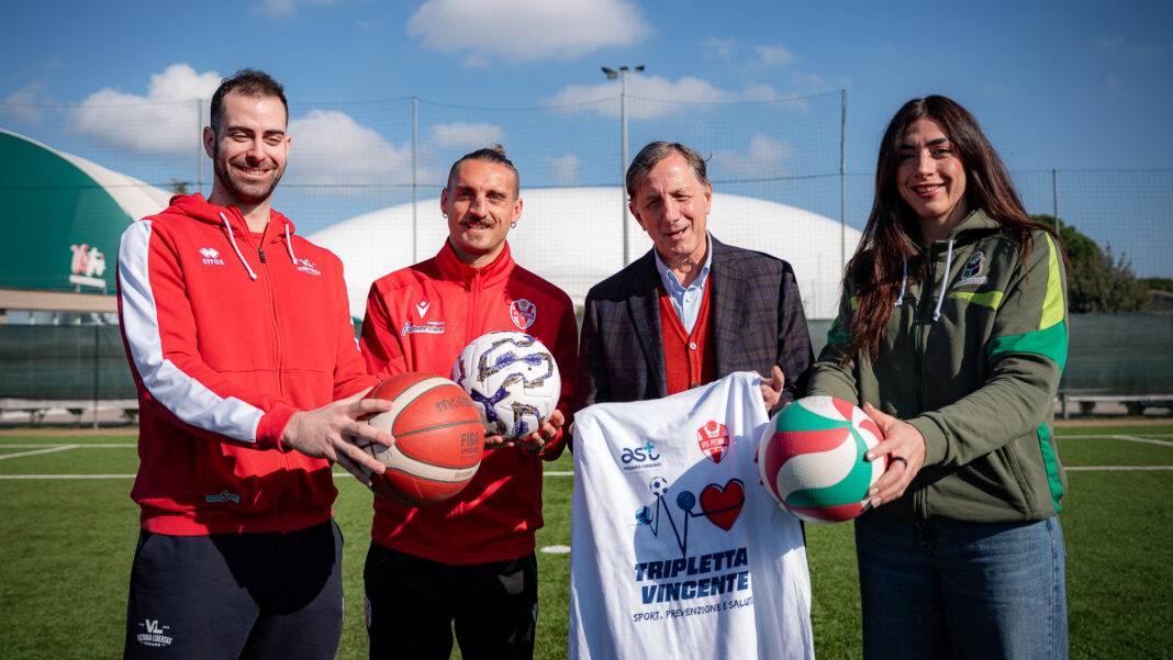I tre capitani insieme per la prevenzione. L’Ast Pu insieme a Vis Pesaro 1898 (calcio), Victoria Libertas Pesaro (basket) e Megabox Volley (pallavolo), con un nuovo progetto multidisciplinare: ‘Tripletta vincente: sport, prevenzione e salute – una squadra della salute“, presentato questa mattina al centro sportivo della Vis Pesaro. L’obiettivo: promuovere la cultura della prevenzione e i sani stili di vita, incontrando i cittadini nei loro luoghi di aggregazione come gli stadi e i palazzetti. Punto focale della conferenza è stato l’intervento in collegamento con Massimo Ambrosini, testimonial d’eccezione del progetto. L’ex campione ha condiviso una testimonianza, parlando non solo da sportivo, ma da cittadino e genitore che conosce da vicino il Diabete di Tipo 1. “Il diabete è un avversario difficile, da marcare stretto, ma con la squadra giusta non si perde mai” ha detto Ambrosini.