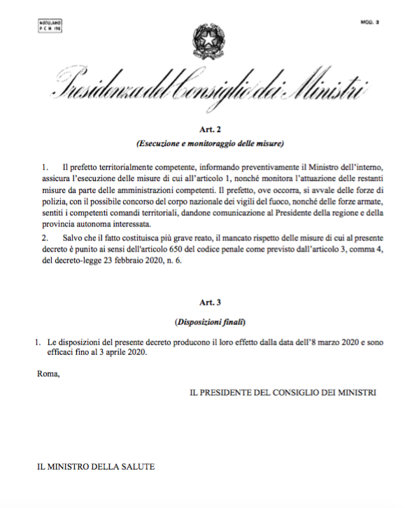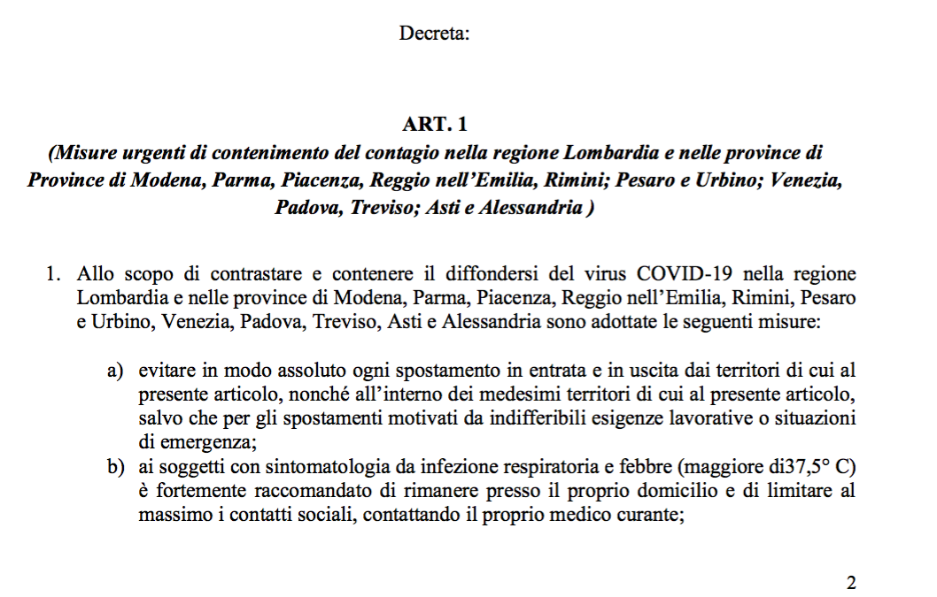 Abbiamo ricevuto poco più di un’ora fa la bozza di Decreto del Presidente del Consiglio dei Ministri recante ulteriori misure urgenti di contenimento del contagio nella regione Lombardia e in alcune province italiane tra cui Pesaro e Urbino.
