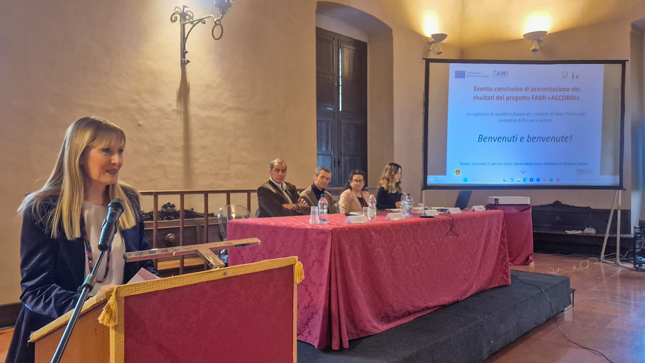 PESARO – Si è tenuto oggi alle ore 9.30, presso il Salone Metaurense della Prefettura di Pesaro e Urbino, l’incontro conclusivo dedicato ai risultati del progetto “ACCORDI – Accoglienza di Qualità a favore dei cittadini di Paesi Terzi nella provincia di Pesaro e Urbino” per le prospettive future di inclusione. Il progetto, del quale la Prefettura è capofila in partenariato con “L’Africa Chiama” e “Iscos Marche”, è stato finanziato dal fondo FAMI (Fondo Asilo Migrazione e Integrazione) con l’obiettivo di rafforzare le politiche di accoglienza, inclusione e tutela dei diritti dei cittadini di Paesi terzi sul territorio provinciale.