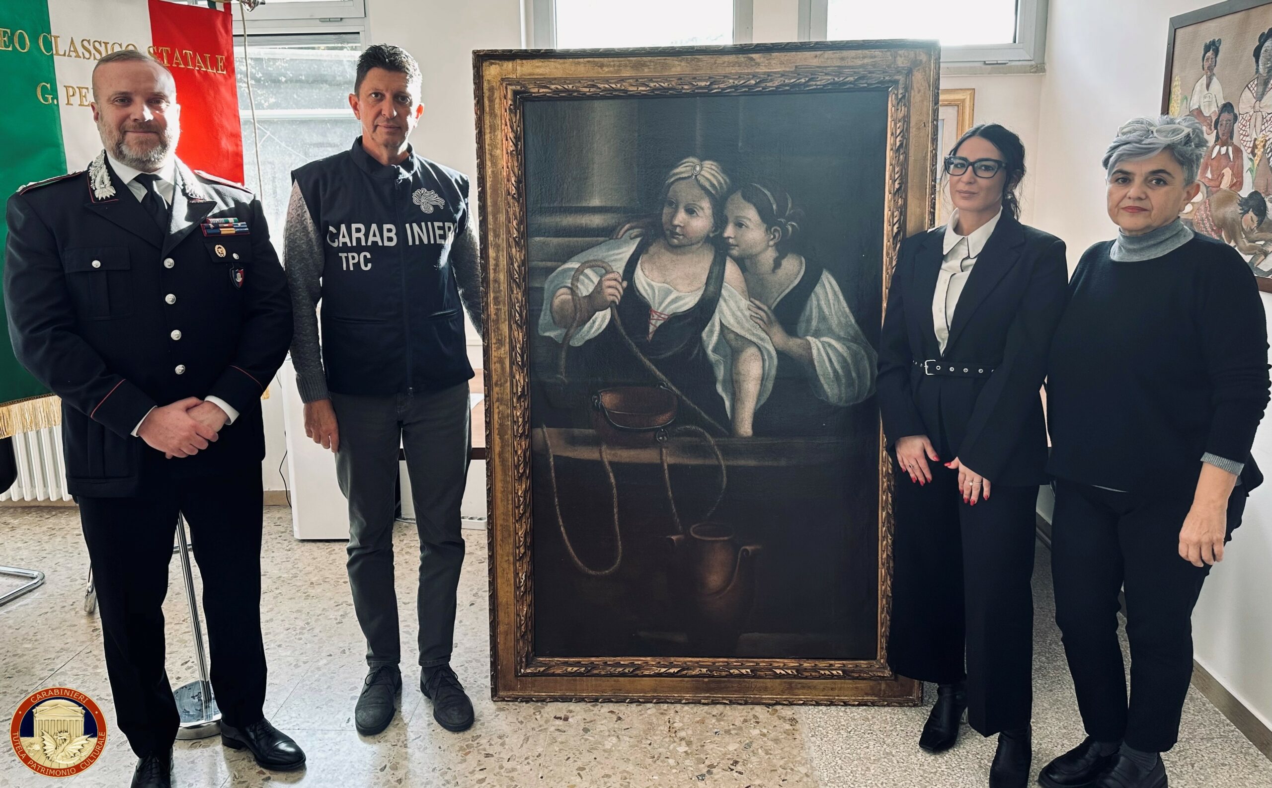 SENIGALLIA – Il 3 dicembre 2025, alle ore 10:00, a Senigallia (AN), nella sede del Liceo Classico “Perticari”, i Carabinieri del Nucleo Tutela Patrimonio Culturale di Ancona hanno riconsegnato, al responsabile di quell’Istituto, il dipinto, olio su tela, raffigurante “Fanciulle al pozzo” (cm 160×101) che corrisponde al ritaglio di una tela molto più grande, raffigurante la scena biblica di “Rebecca al pozzo”, delle dimensioni di cm 293 x 200 e datato XVIII secolo, trafugato tra il marzo e il novembre 2004 da “Palazzo Gherardi” di Senigallia (AN), sede del Liceo Classico “Perticari”, e denunciato quale furto il 25 febbraio 2005.