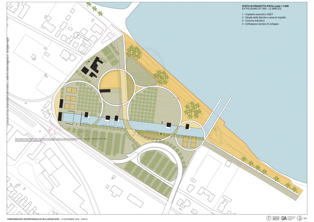 FANO – Il percorso di rigenerazione per l’area del Bersaglio e dell’ex pista dei go-kart segna un passo decisivo verso la sua configurazione definitiva. Grazie alla stretta collaborazione tra l’Amministrazione comunale e l’Università di Ferrara, il piano di recupero ha preso forma attraverso un’attenta analisi del territorio, con l’obiettivo di restituire alla città uno spazio funzionale e identitario. Tra le diverse soluzioni studiate – denominate Losanghe, Romana e Pista – è stata quest’ultima a emergere come la più convincente a seguito del percorso di confronto con il Comitato di Sassonia Sud, che tanto ha caldeggiato questa progettazione, il Quartiere 8 e i residenti di Sassonia Sud, Baia Metauro e Villa Uscenti. La soluzione “Pista” si distingue per un disegno armonioso fatto di linee morbide che richiamano la memoria storica del luogo, reinterpretandola in una visione moderna e integrata.