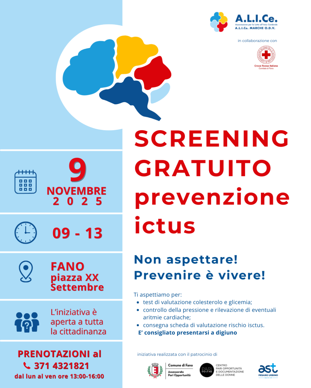 FANO – Prosegue la campagna regionale di screening gratuiti per la prevenzione dell’ictus cerebrale, promossa da A.L.I.Ce. MARCHE ODV – Associazione per la Lotta all’Ictus Cerebrale.