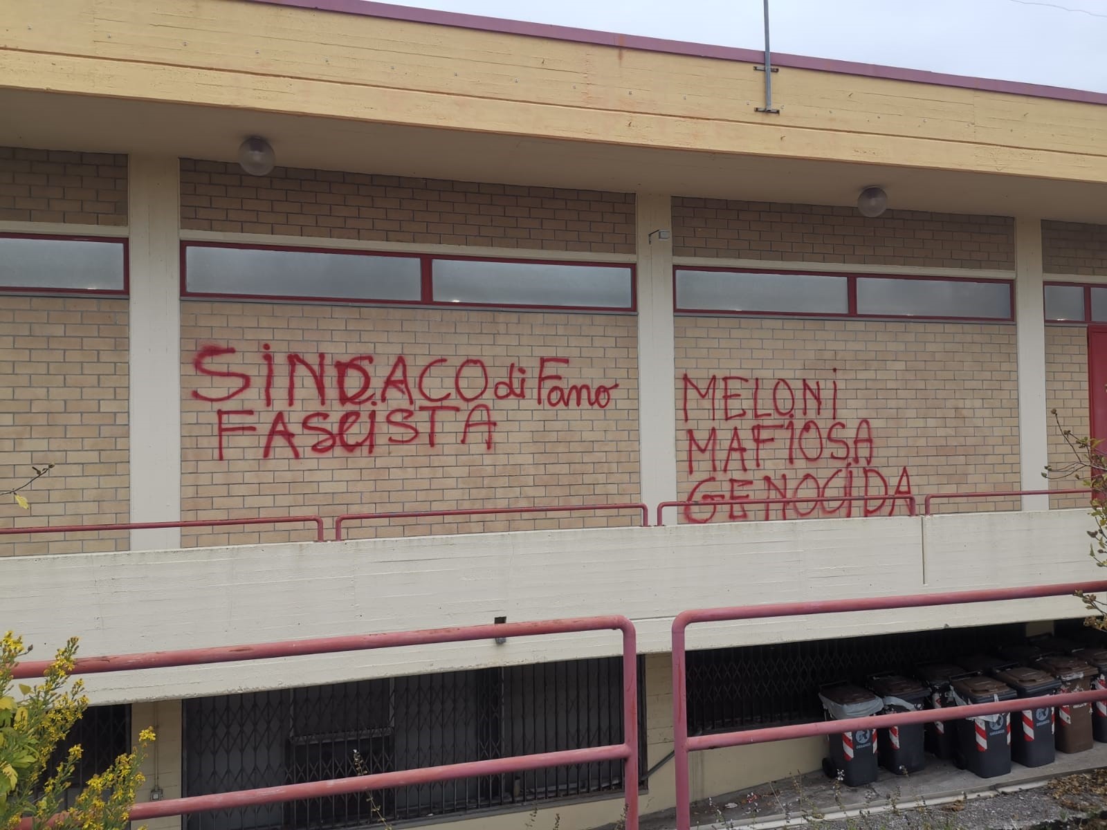 “Abbiamo visto con sdegno le scritte comparse sui muri del centro commerciale di Sant’Orso, rivolte al sindaco di Fano Luca Serfilippi e alla presidente del Consiglio Giorgia Meloni.