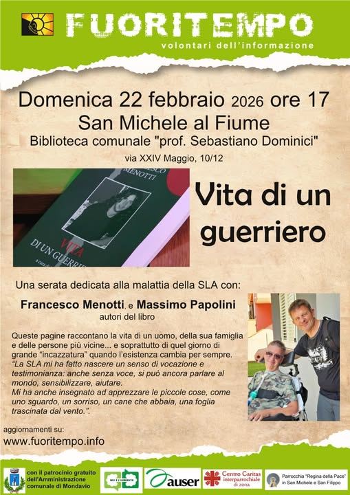 MONDAVIO – Domenica 22 febbraio alle ore 17 il Gruppo Fuoritempo organizzerà l’incontro “Vita di un guerriero” presso la Biblioteca comunale “Sebastiano Dominici” di San Michele al Fiume.