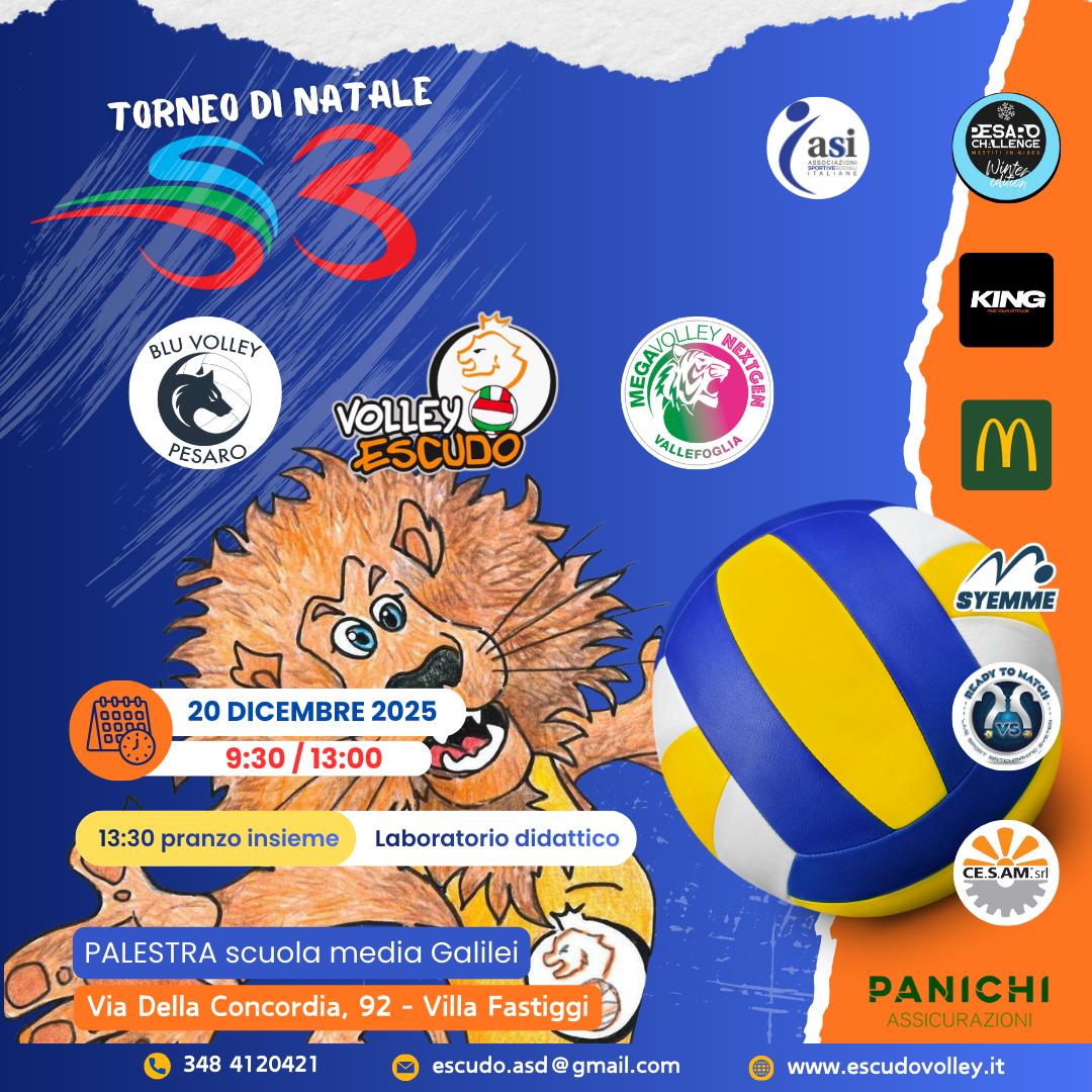 PESARO – Tutto pronto per il Torneo di Mini Volley che, anche quest’anno, promette emozioni e gioia grazie ad una giornata dedicata allo sport e al divertimento in piena atmosfera natalizia, organizzata da ASD Escudo Volley. Un’evento dedicato allo sport della pallavolo grazie alla disciplina del minivolley, ma dedicato anche all’amicizia e che si svolgerà sabato 20 dicembre dalle ore 09.00 presso la palestra della scuola Galilei a Villa Fastiggi.