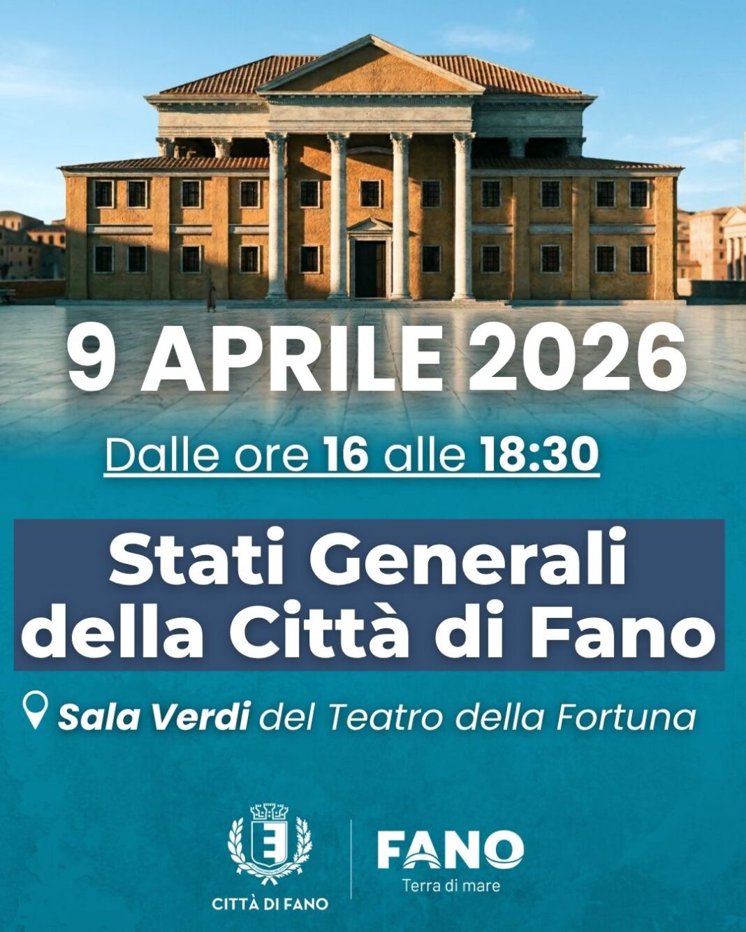 FANO – Un appuntamento per costruire il futuro della città partendo dalle sue radici più profonde. Giovedì 9 aprile, alle ore 16.00, al Teatro della Fortuna, nella Sala Verdi, si terranno gli Stati Generali della Città di Fano, promossi dall’Amministrazione comunale.