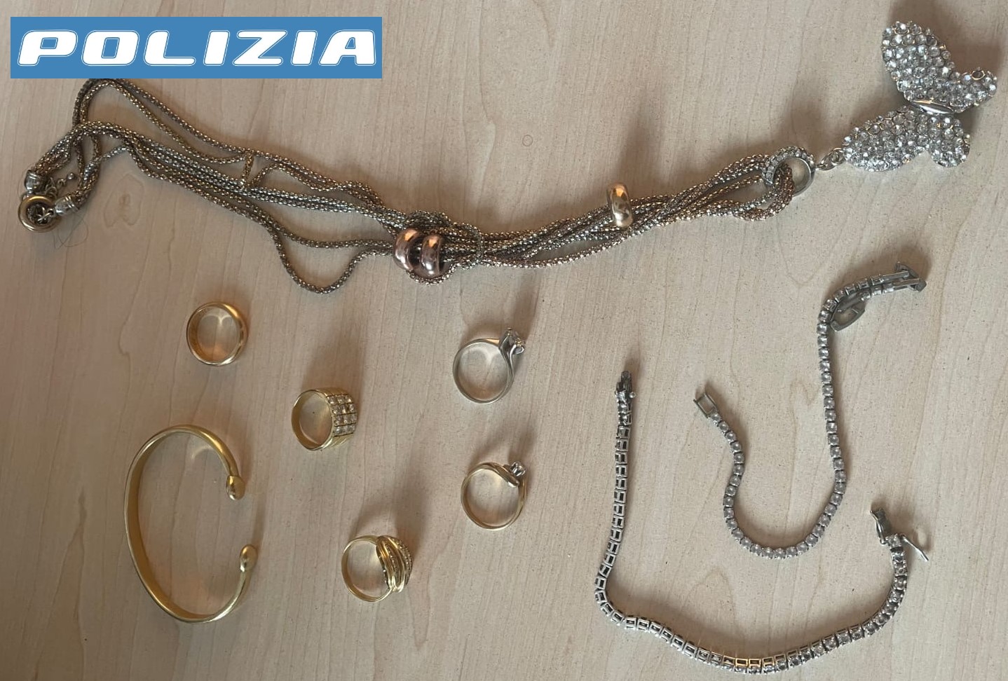 La refurtiva, del valore complessivo di circa 30mila euro, composta da anelli in oro, collane e diamanti, è stata restituita alla vittima che, visibilmente commossa, ha ringraziato il personale della Polizia di Stato per il tempestivo intervento.