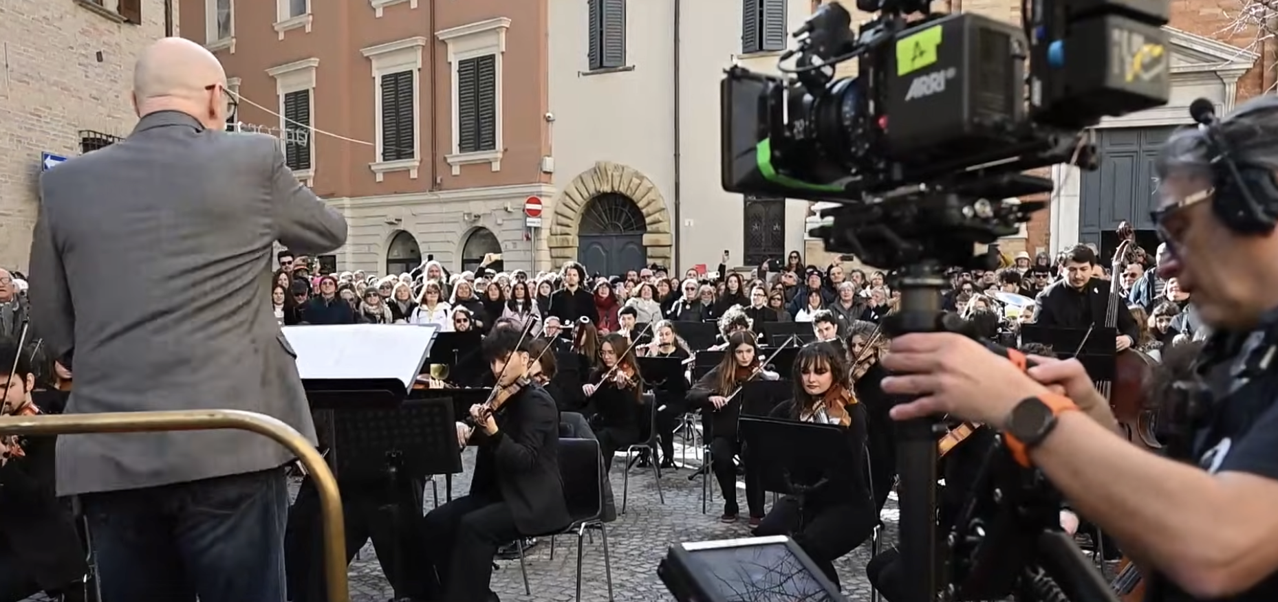 Nel capoluogo marchigiano, oltre 500 cittadini di tutte le età hanno preso parte alla registrazione dello spot Rai dedicato alla 76ª edizione del Festival della Canzone Italiana. Accompagnati dall’Orchestra del Conservatorio Rossini, i partecipanti hanno trasformato piazza Olivieri in un palcoscenico a cielo aperto, interpretando insieme alcuni dei brani simbolo della manifestazione.