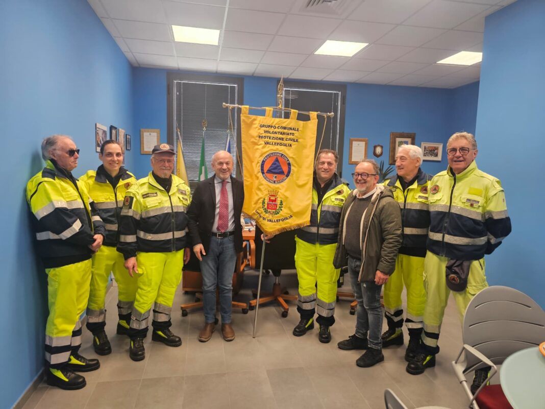 FANO – Questa mattina, giovedì 2 aprile 2026, il Sindaco Sen. Palmiro Ucchielli e il Presidente del Consiglio Comunale di Vallefoglia, con delega alla Protezione Civile, Dott. Massimo Pensalfini, hanno ufficialmente consegnato il nuovo stendardo realizzato dall’Amministrazione Comunale al Gruppo Comunale di Protezione Civile.
