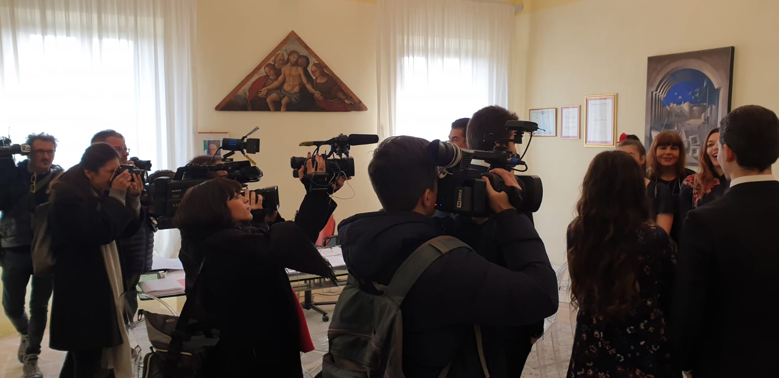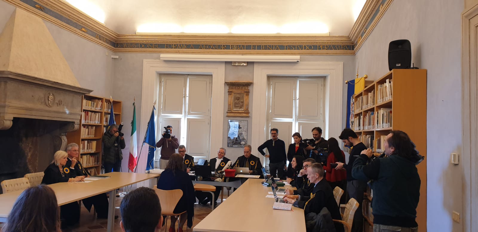 URBINO – Davanti a fotografi e telecamere Martina Hülser, 55 anni, di Duisburg in Germania insieme agli altri sei figli, questa mattina sono giunti a Urbino per discutere la loro tesi di laurea all’Università Carlo Bo. Insieme a lei ci sono le figlie Michelle di 27 anni, Sarah di 26 e Daniela di 25. E poi i più piccoli, Emanuel, 23 anni, Christina di 22 anni ed Eliah di 21. Un bel traguardo, una storia che è già in lizza per il Guinnes Mondiale dei primati.