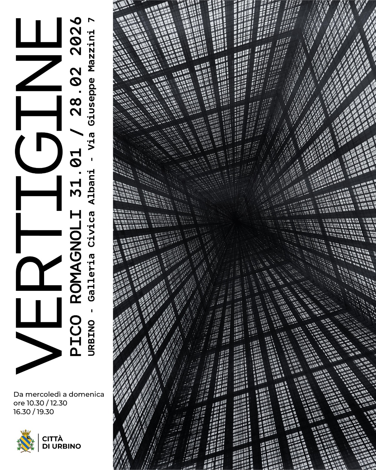 URBINO – La Città di Urbino si prepara a ospitare, nelle prestigiose sale della Galleria Civica Albani, la mostra personale di Pico Romagnoli VERTIGINE, a cura di Maurizio Cesarini e Simona Zava. Il nuovo e importante progetto espositivo, promosso dalla Galleria Civica Albani, con il patrocinio della Città di Urbino, sarà inaugurato sabato 31 gennaio 2026 alle ore 18:00.